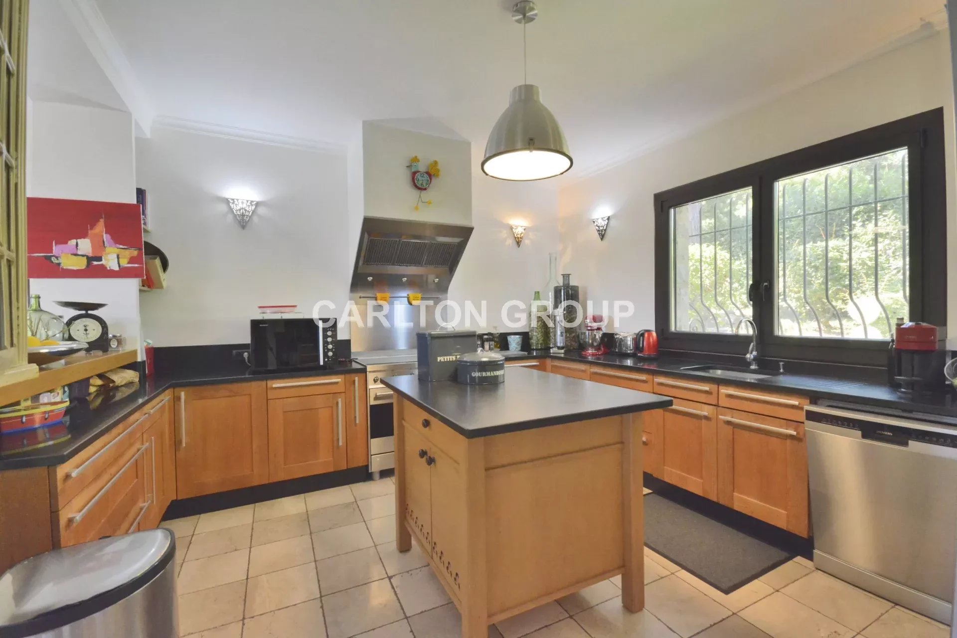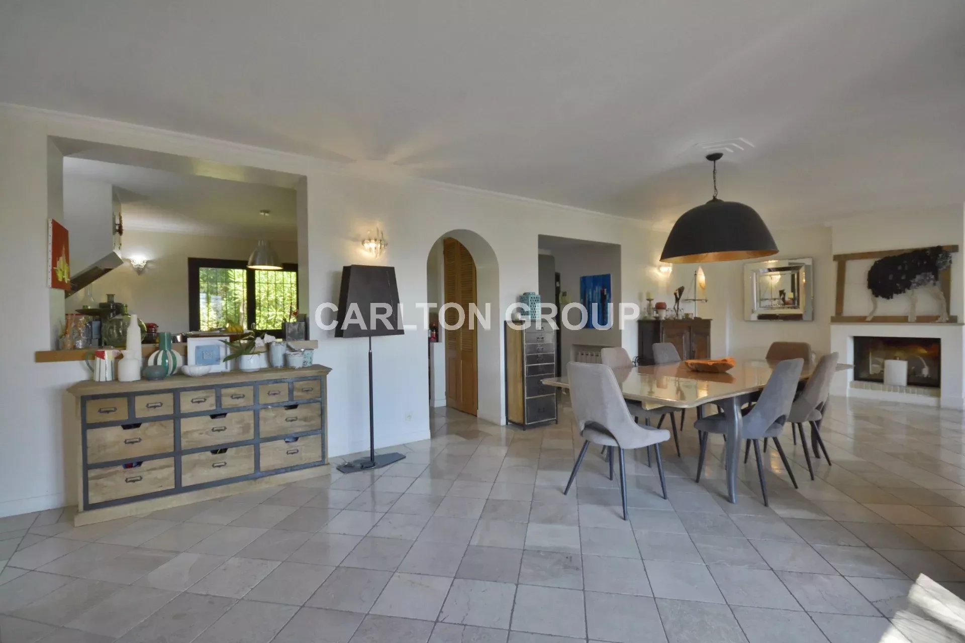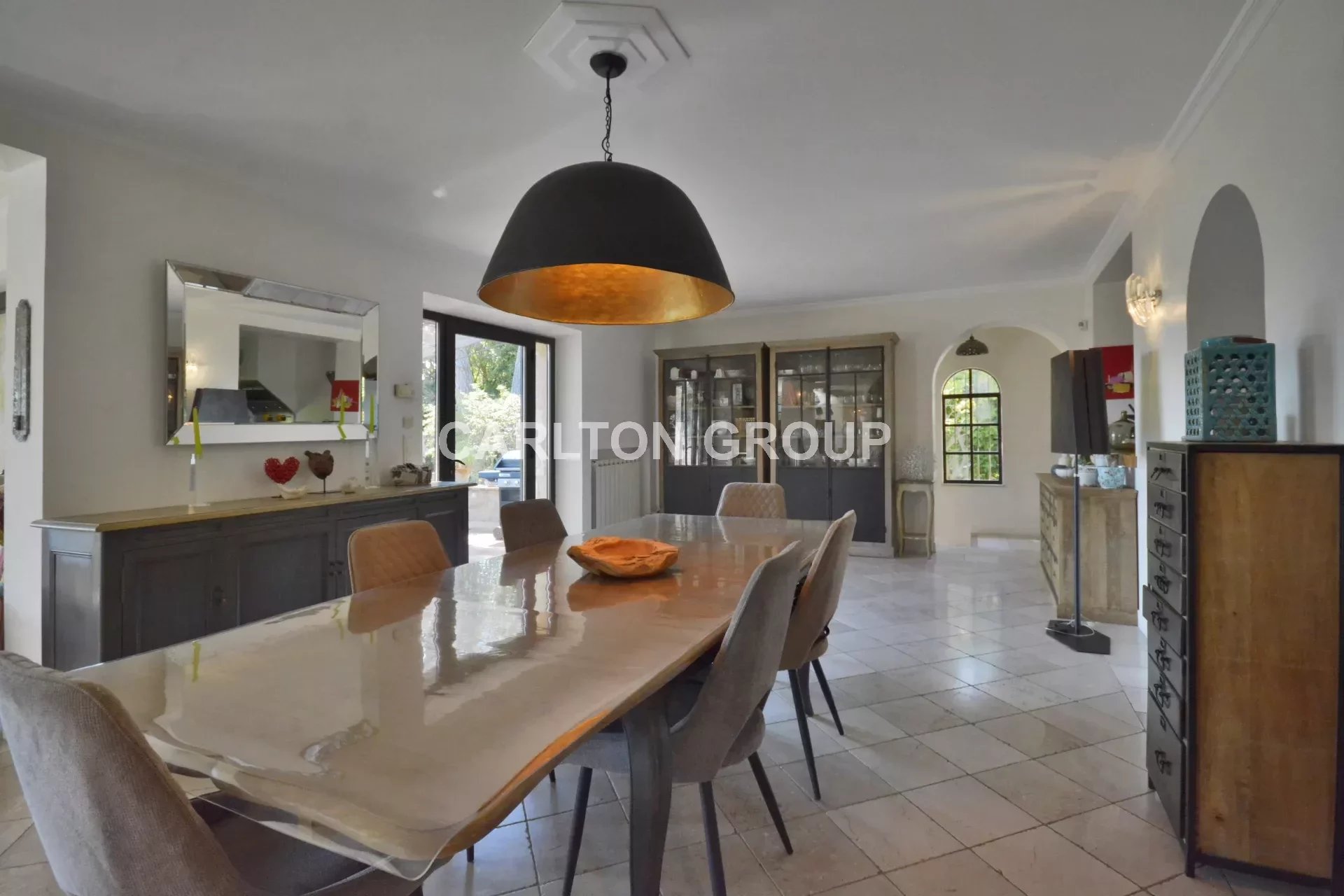 Spacieux séjour cheminée lumineux avec grandes baies vitrées, belles hauteurs de plafonds, cuisine indépendante équipée, 3 grandes chambres en suite et appartement indépendant. Grand sous-sol, garage, atelier et pool-house aménagé.