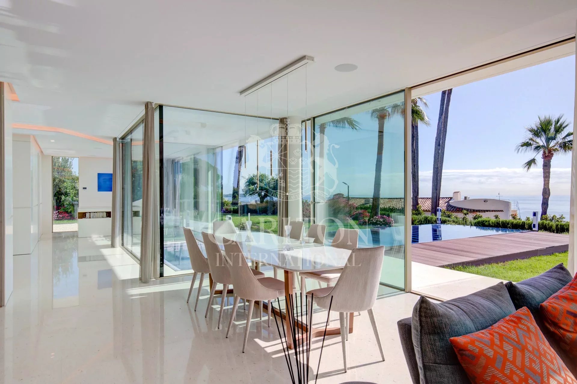 Orientée plein Sud couverte avec de larges baies vitrées, cette prouesse architecturale d’environ 500m2 au total est édifiée sur un parc paysagé plat d’environ de 2245m2 avec piscine à effet miroir.