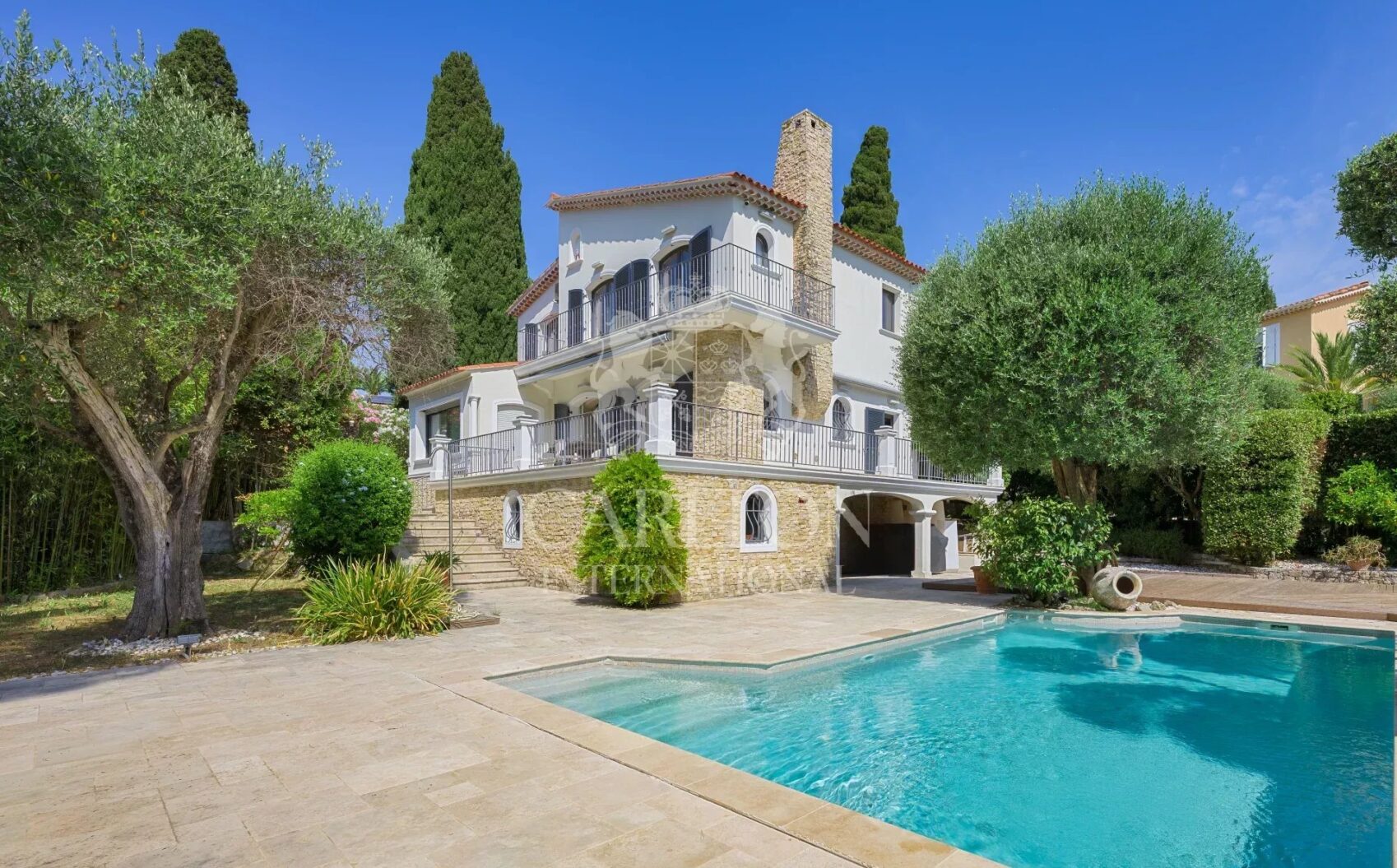Nichée dans un domaine privé à quelques minutes à pied des commerces et des plages de la Croisette, découvrez cette élégante demeure d’environ 225m2 au total offrant une superbe vue sur les collines de la Californie avec un bel aperçu mer depuis l’étage.