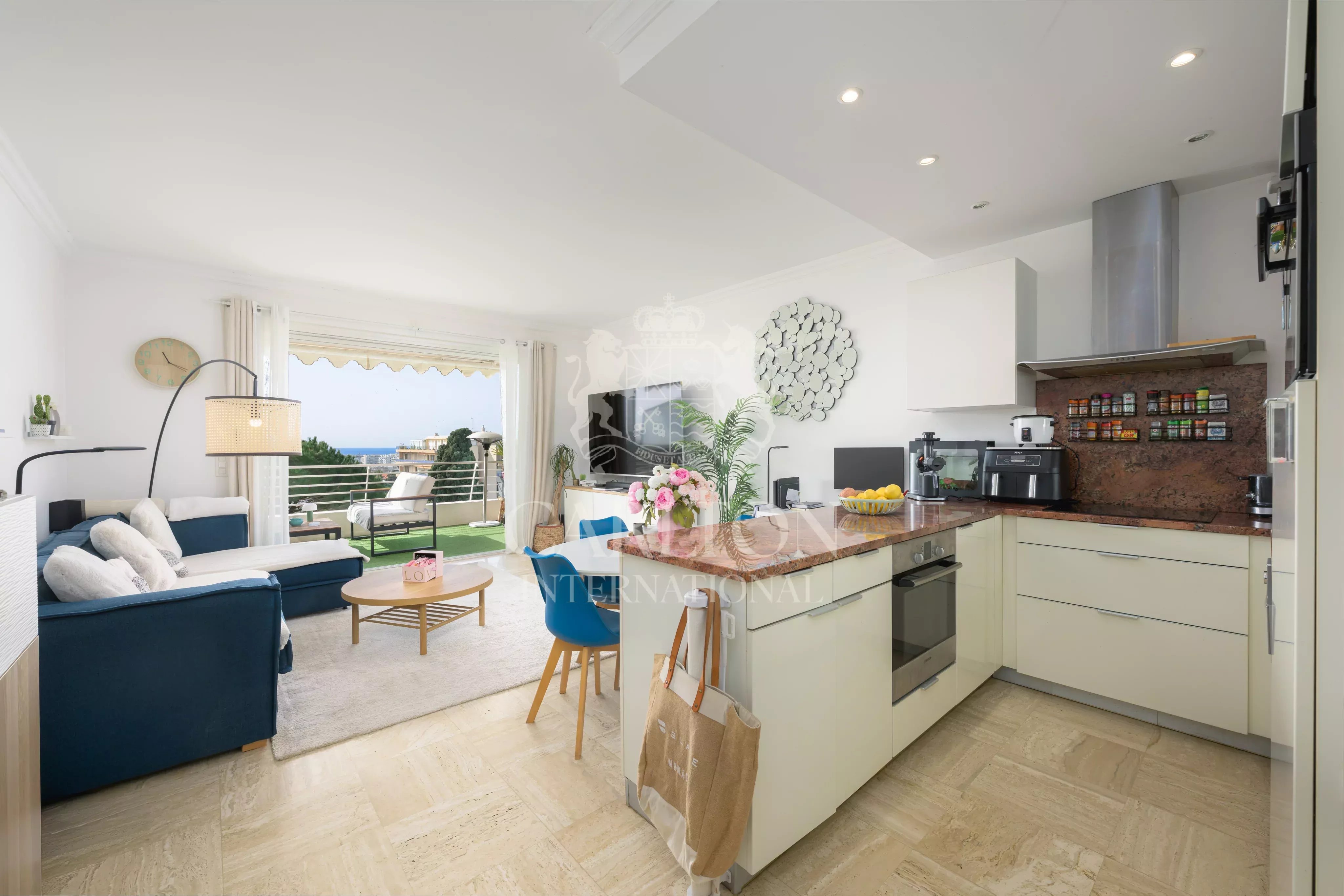 Au cœur de la très recherchée Basse Californie, ce 3 pièces lumineux bénéficie d’une superbe terrasse offrant une vue ouverte sur la baie de Cannes.