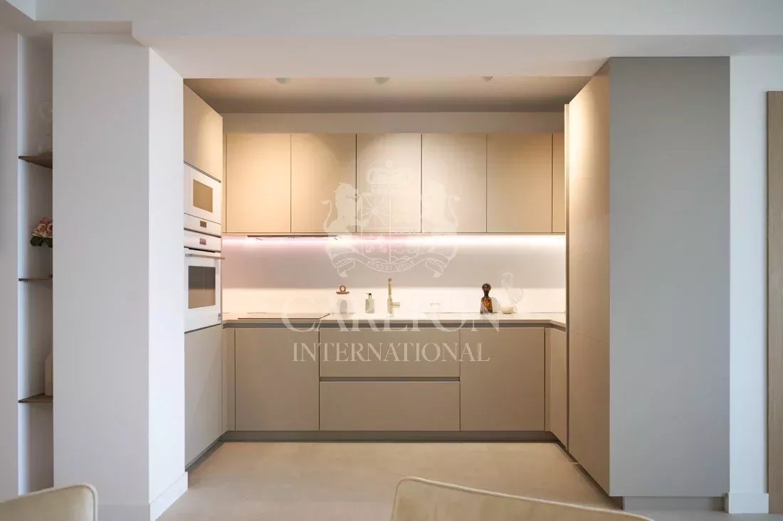 Ce spacieux appartement en étage élevé se compose d’un hall d’entrée suivi d’un spacieux séjour avec cuisine ouverte équipée, l’ensemble ouvrant sur une large terrasse aménagée de 22m2 avec vue imprenable sur la mer.