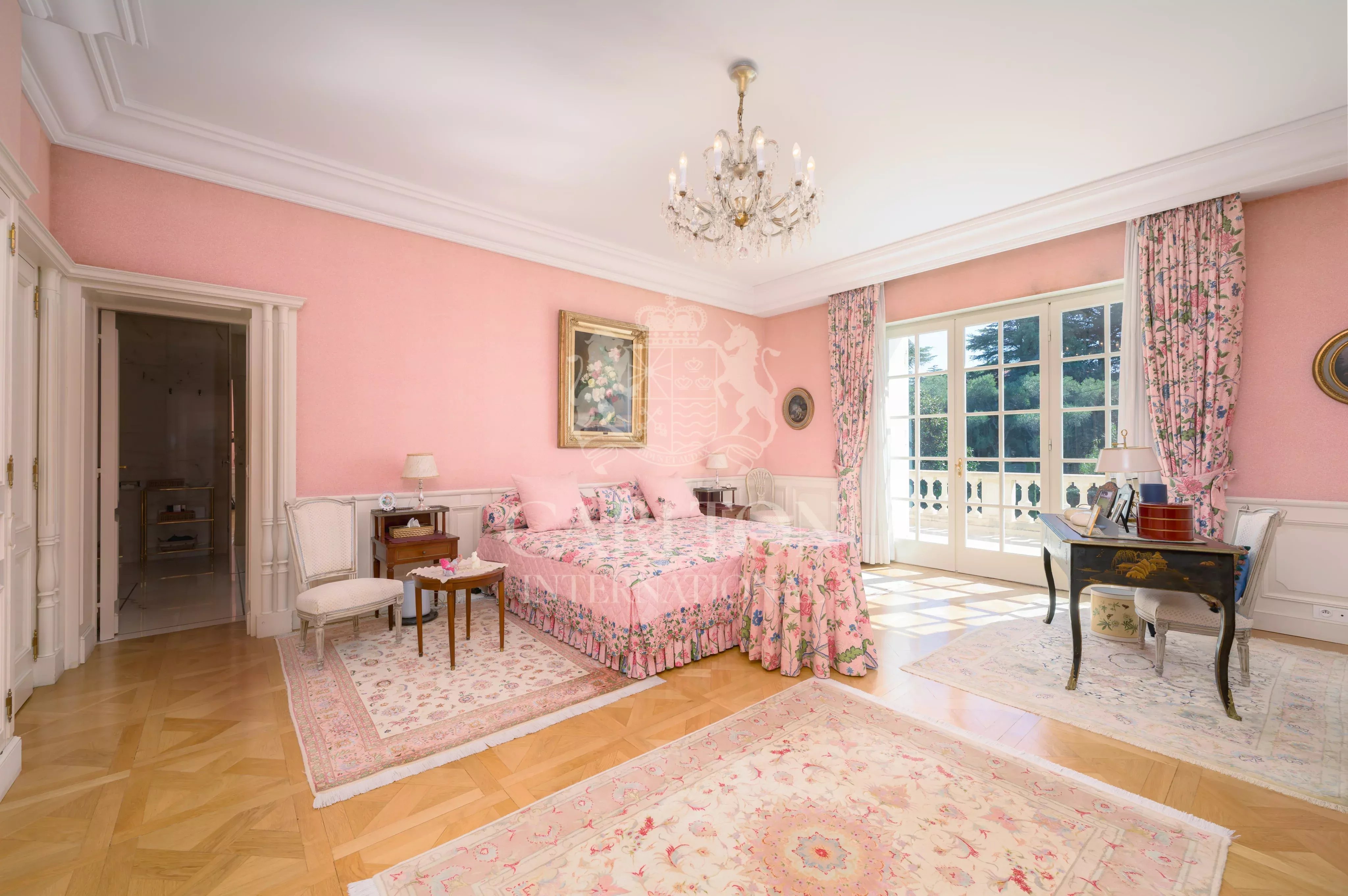 La demeure principale accueille six chambres, complétée par une vaste maison d’amis indépendante et un logement de gardien. Une piscine de grande dimension, de nombreux stationnements et des garages viennent parfaire cet ensemble.