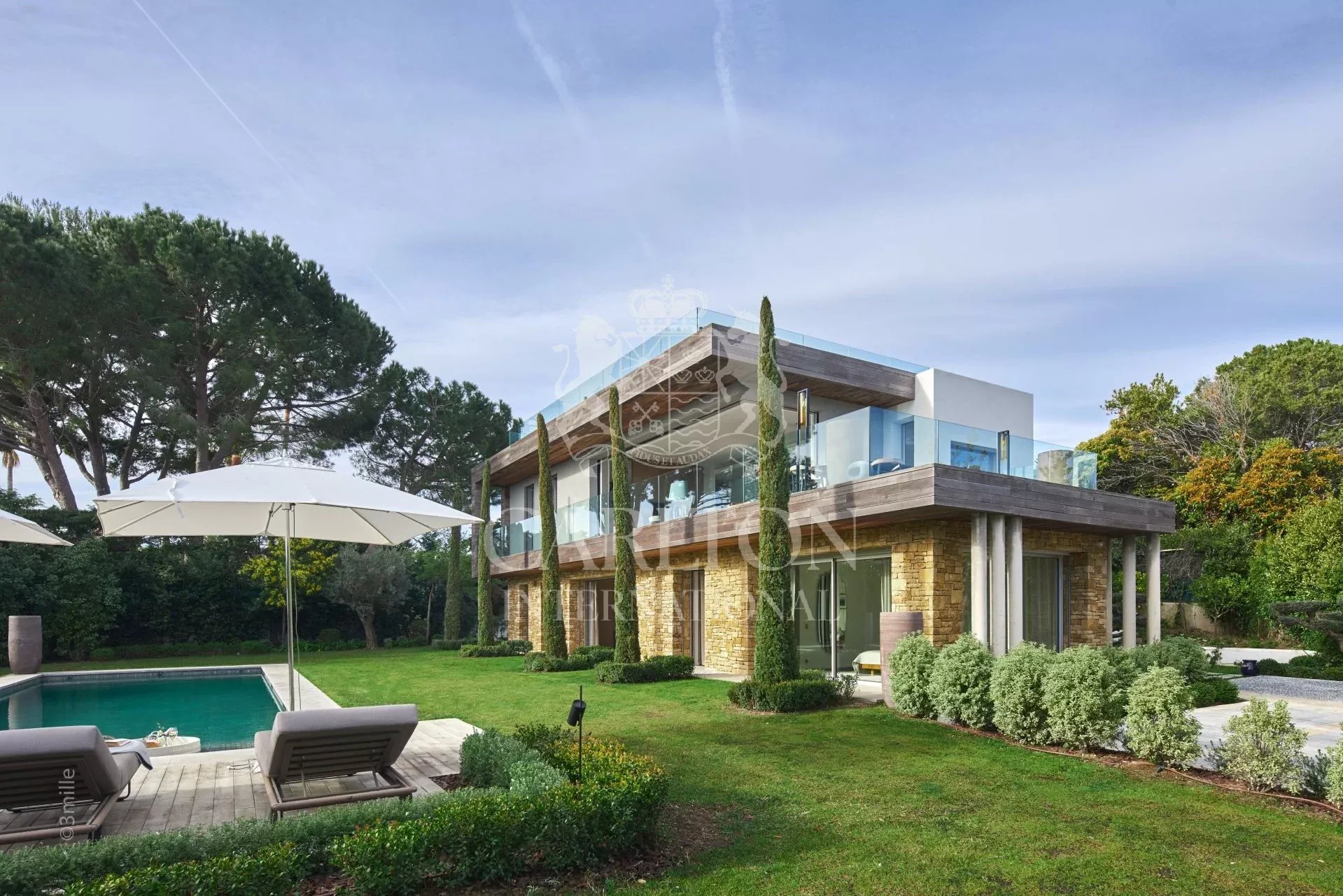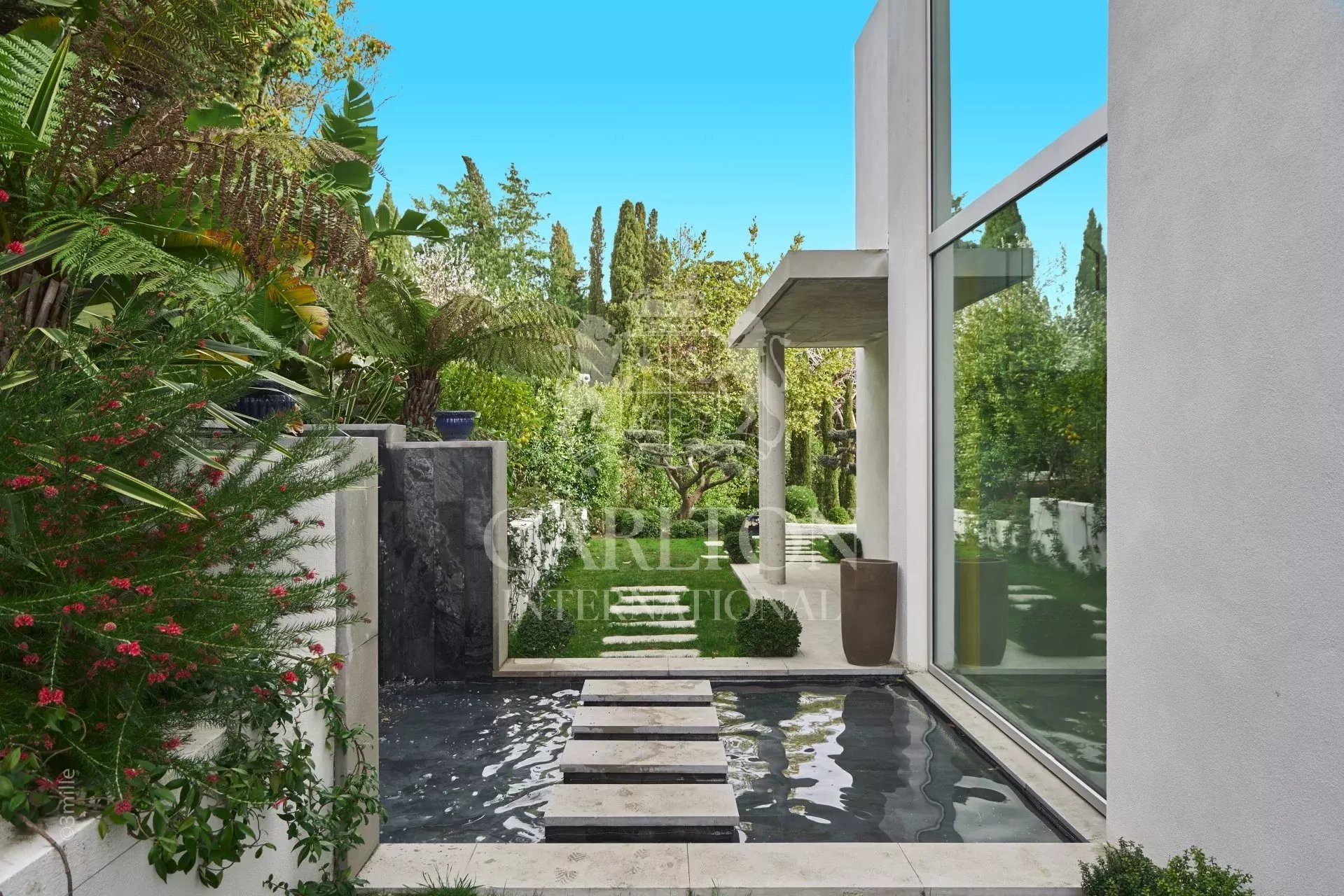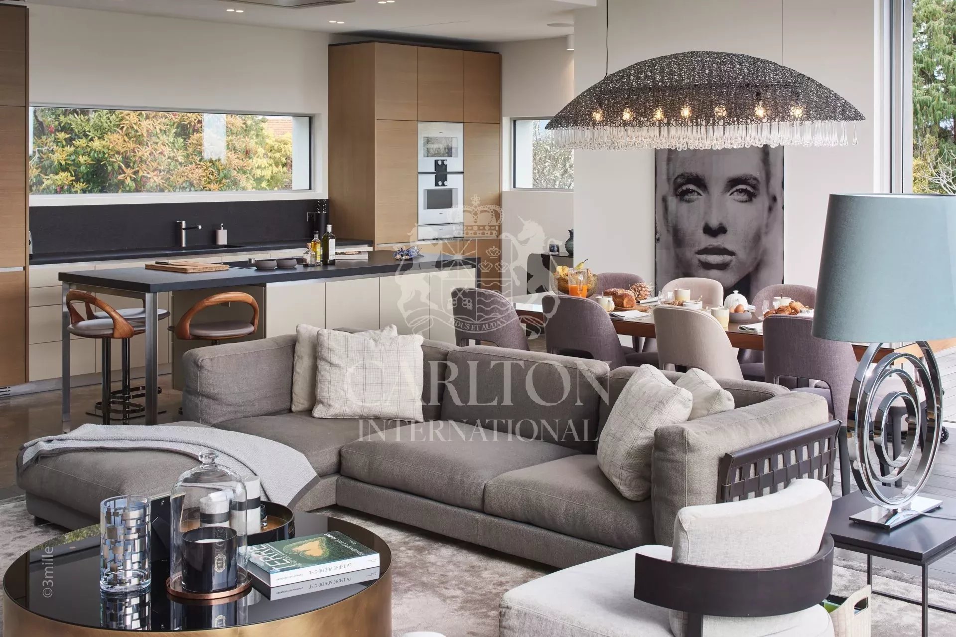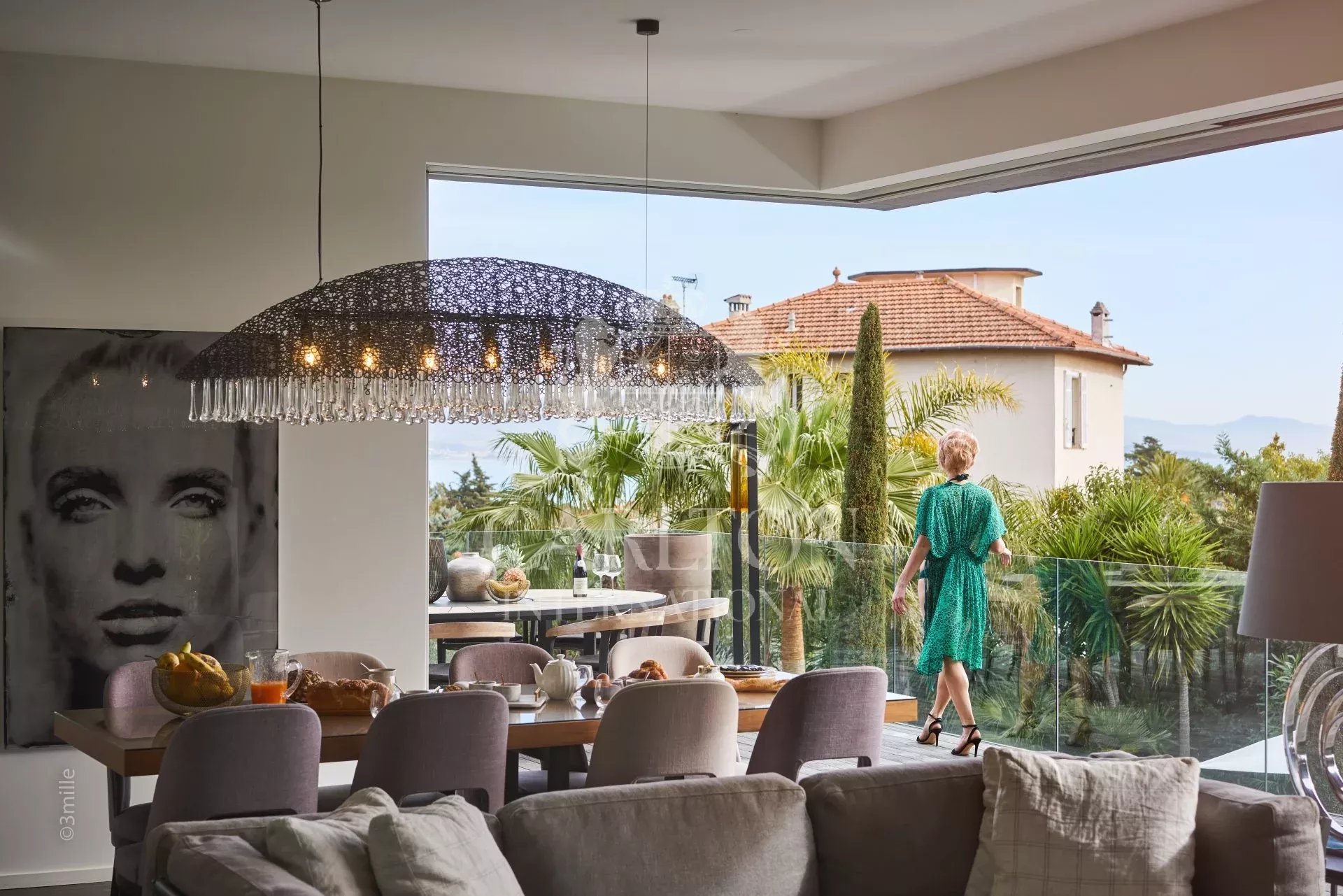 Villa contemporaine d’architecte d’une superficie d’environ 330 m² sise sur un jardin magnifiquement paysager d’environ 1800m². Pouvant accueillir jusqu’à 10 personnes, elle dispose de 4 chambres ensuite et cinquième équipée d’un canapé lit pour les enfants. Vous êtes à environ 850 mètres de la mer et des plages d’Antibes. La villa se compose de 3 étages et d’un toit terrasse avec son bar et une vue extraordinaire sur le phare, la mer et les Alpes du Sud. REF 778