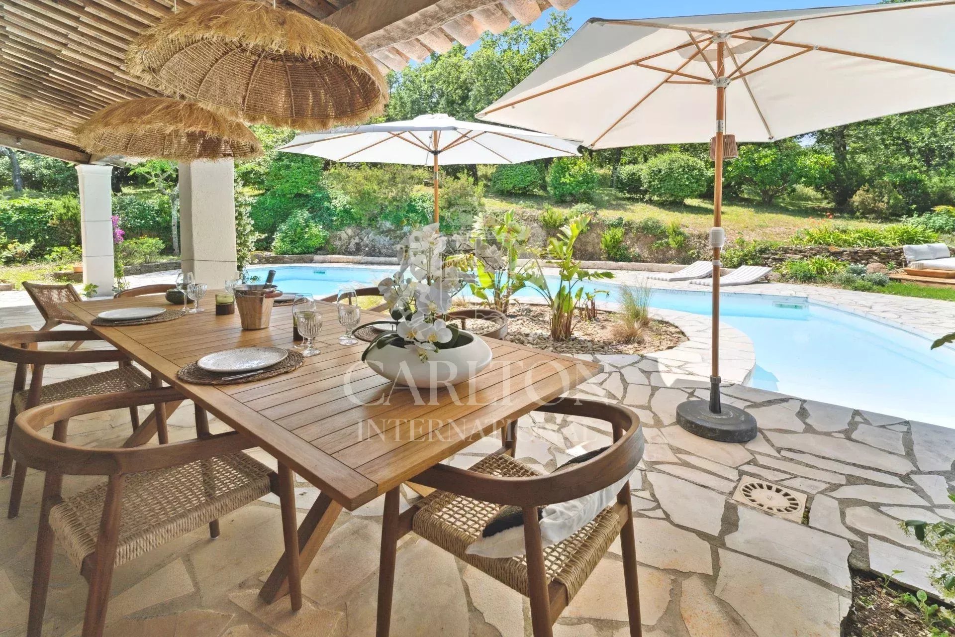 Charmante propriété de style néo-provençal, alliant élégance intemporelle et art de vivre. Idéalement située près du village, elle est nichée au sein d’un joli jardin paysager agrémenté d’une piscine chauffable et d’un spa extérieur. L’intérieur, entièrement rénové, révèle une décoration raffinée qui accentue l’atmosphère paisible et chaleureuse des lieux.