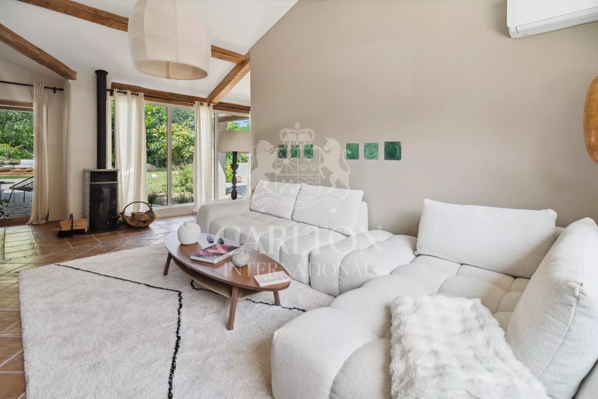 Les espaces extérieurs proposent une terrasse couverte idéale pour les repas, des transats autour de la piscine, un abri de jardin, un portail d’entrée, des stationnements extérieurs pour quatre véhicules, un garage pouvant accueillir deux voitures ainsi que de nombreux espaces de rangement. Avec le village accessible à pied ou à vélo, cette propriété rare offre praticité, et situé à seulement 20 minutes des plages du Golfe de Saint-Tropez.