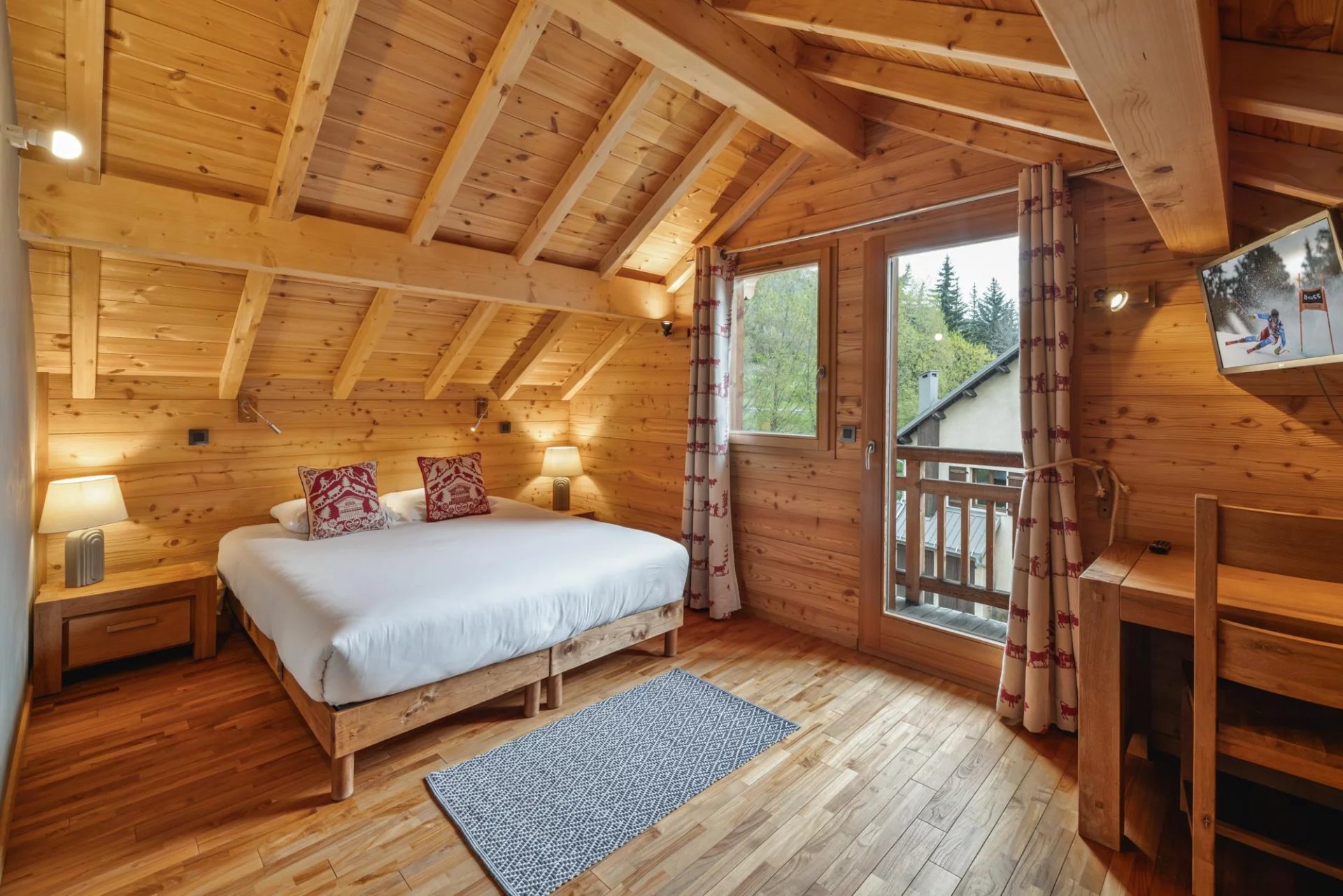 Le chalet Marmotte 2 se trouve dans une rue tranquille de Monêtier, à proximité du centre du village. Son orientation et sa vue dégagée offrent une belle luminosité dans tout le chalet.