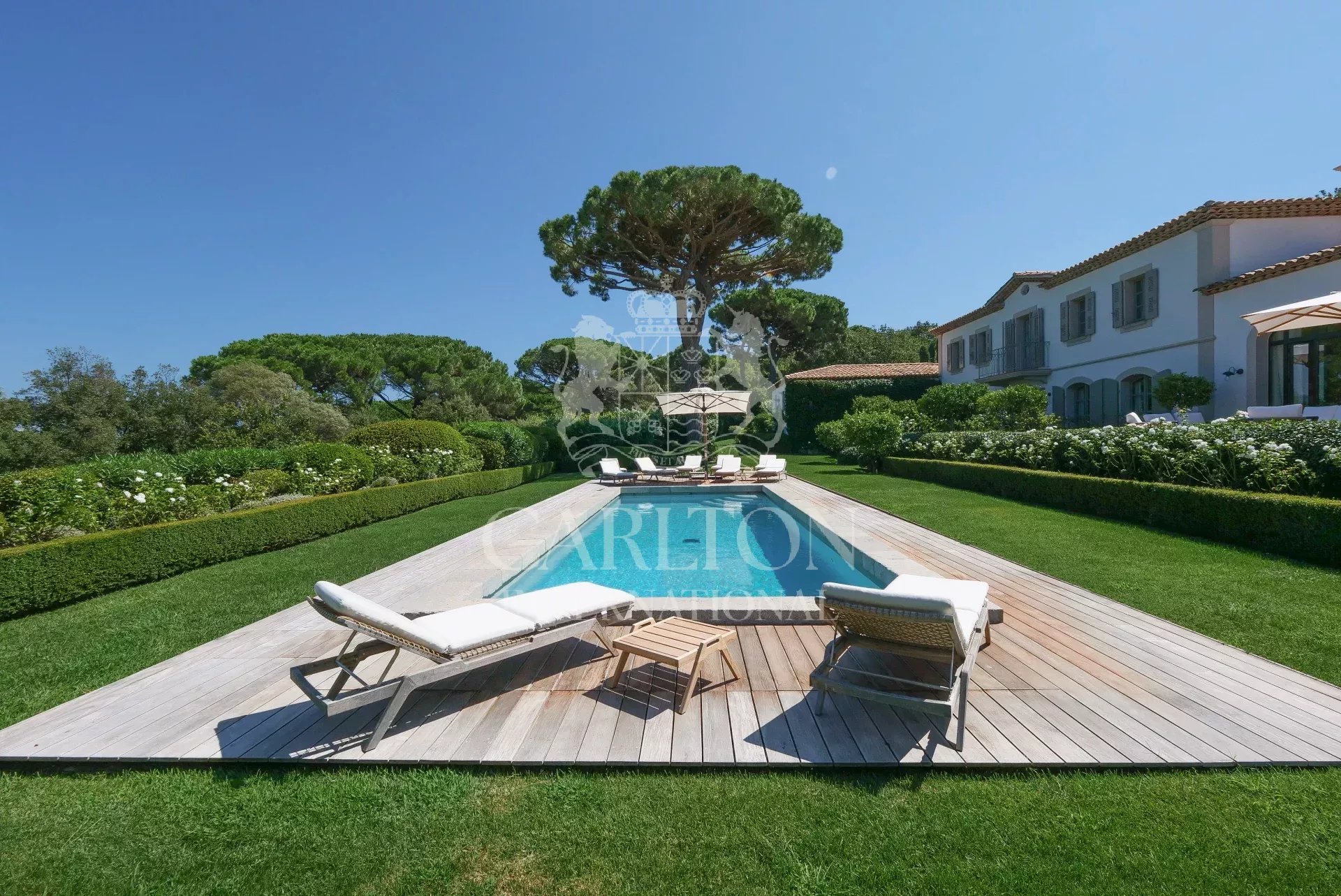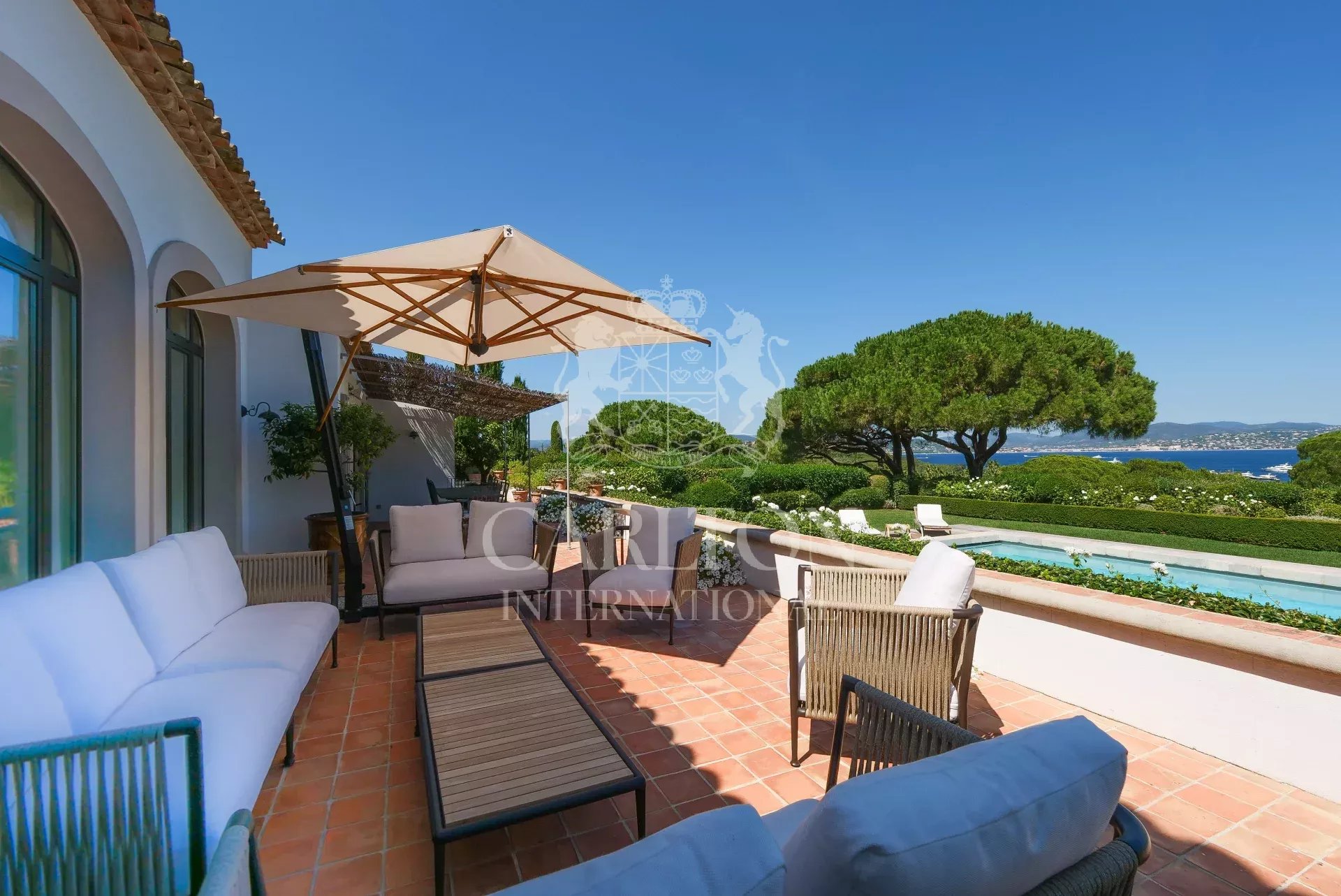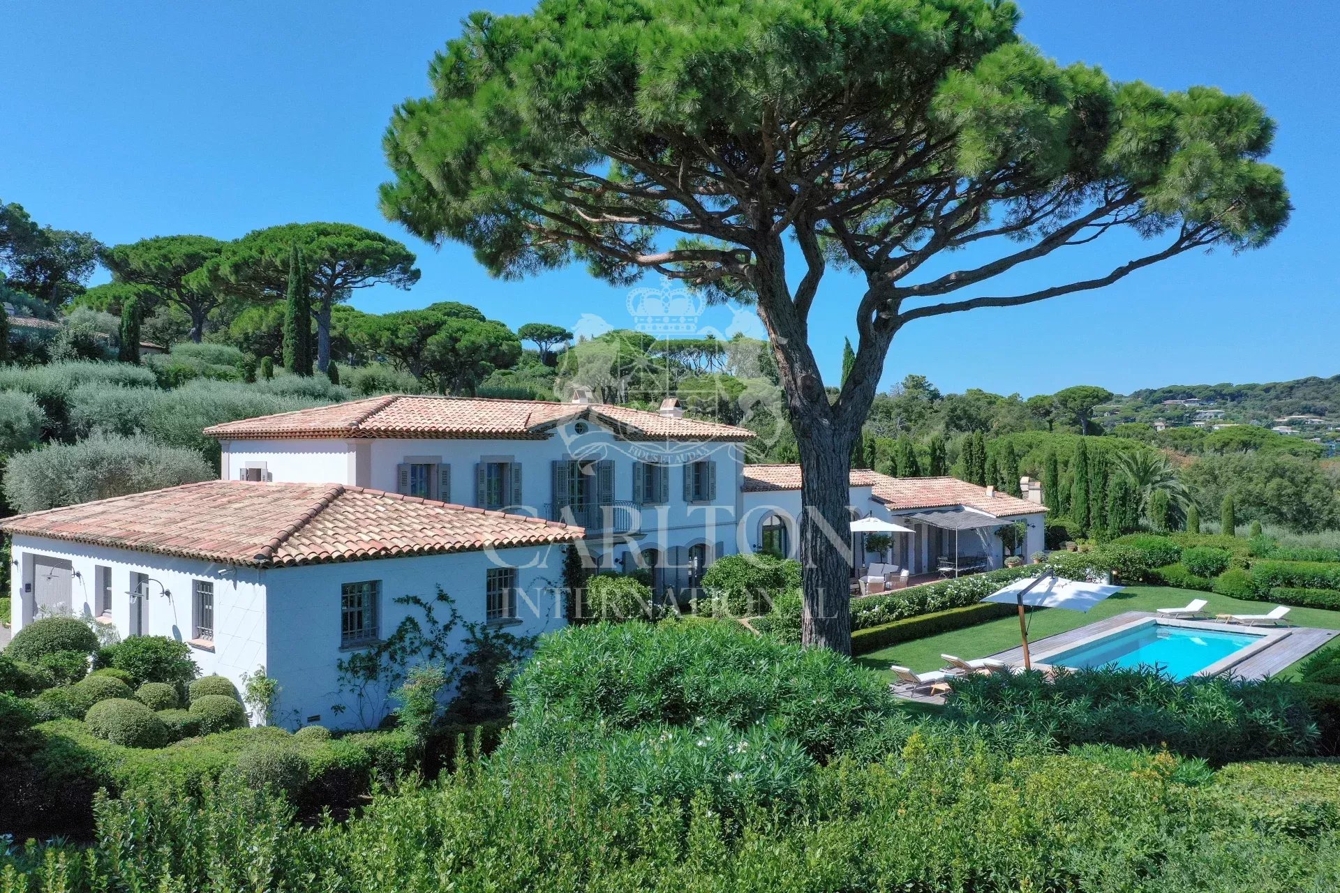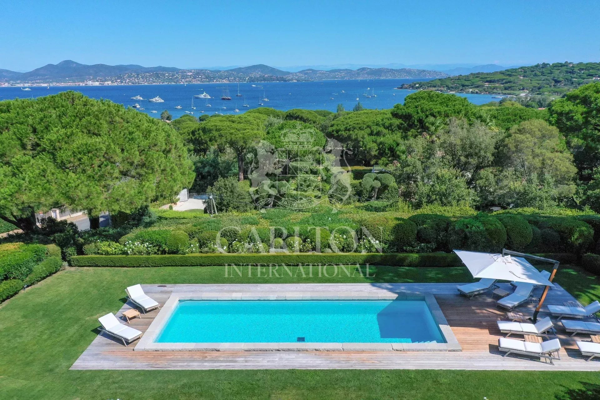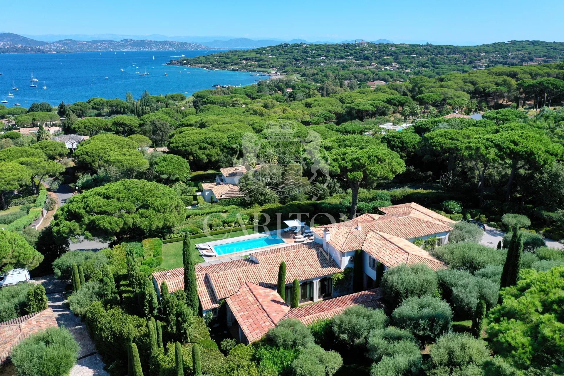 Saint-Tropez : Cette superbe propriété a l’architecture Provençale moderne offre une splendide vue mer, sur le secteur du Capon, à proximité des plages des Canoubiers.