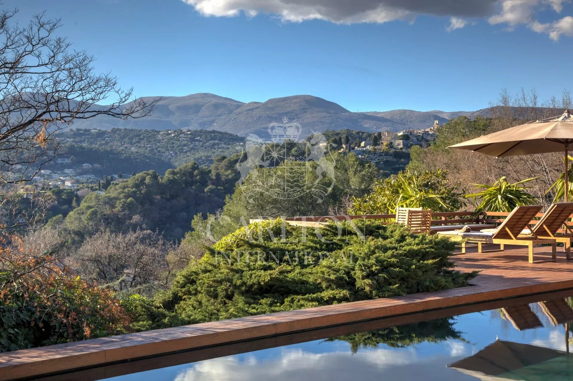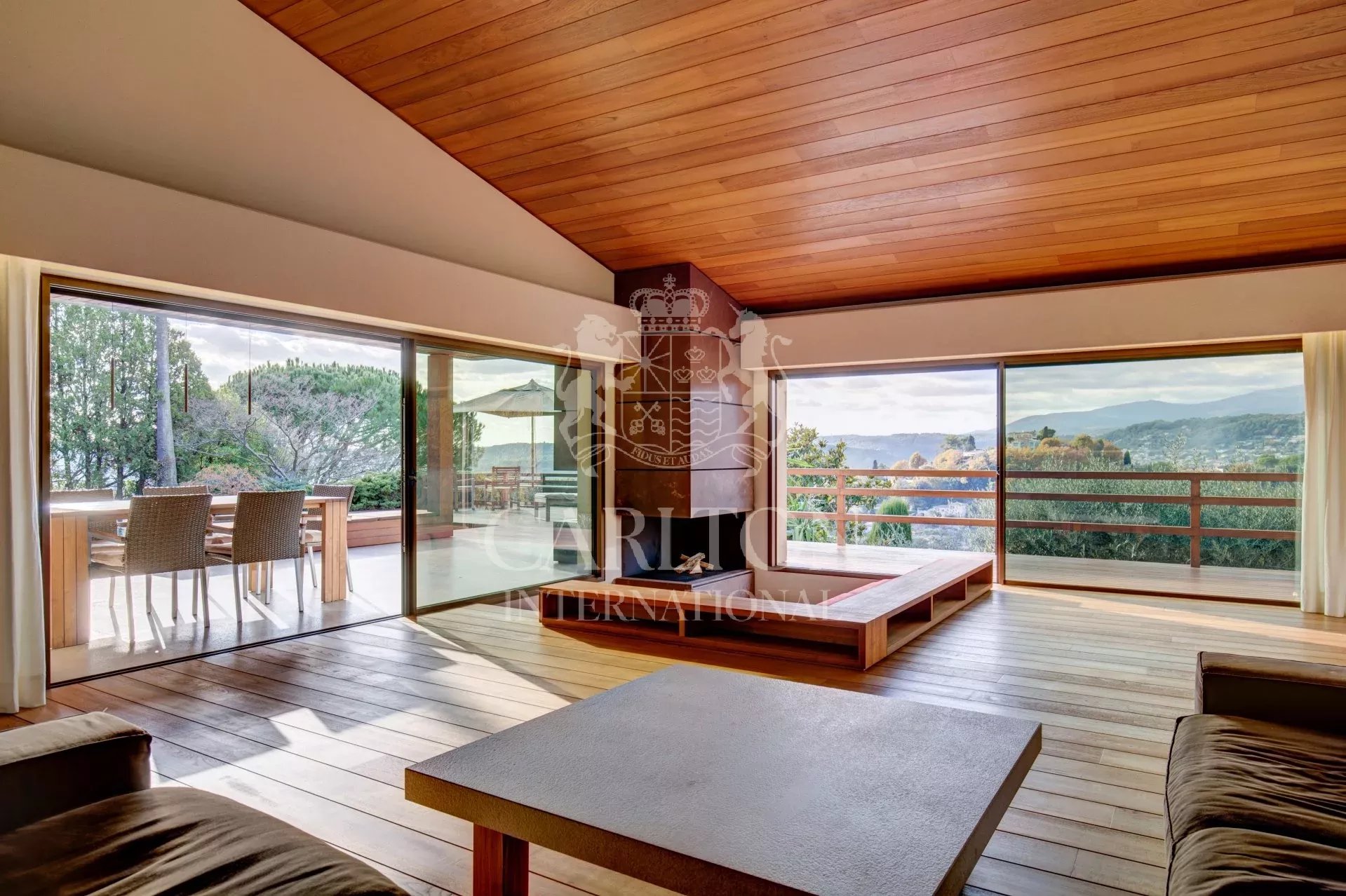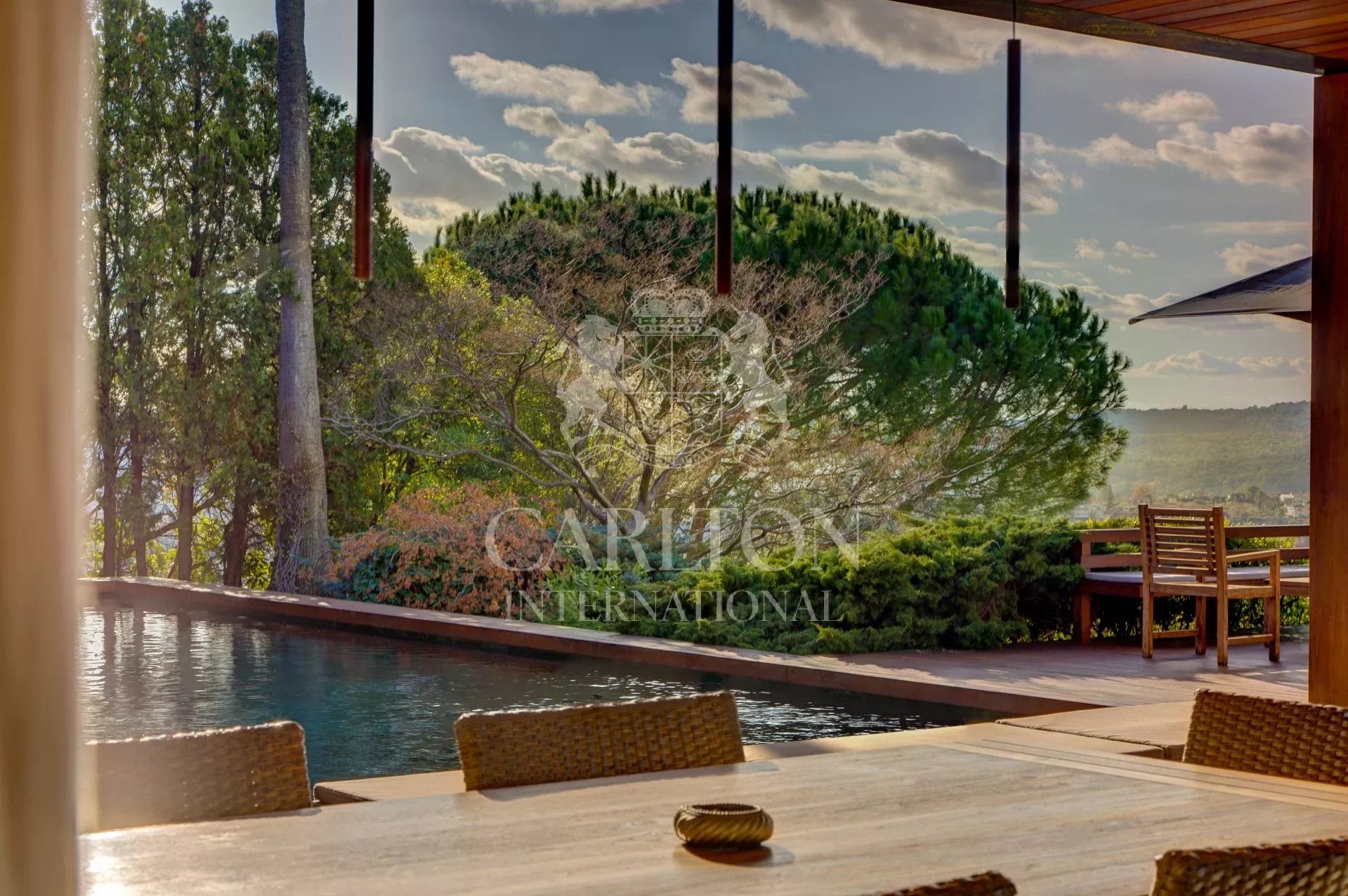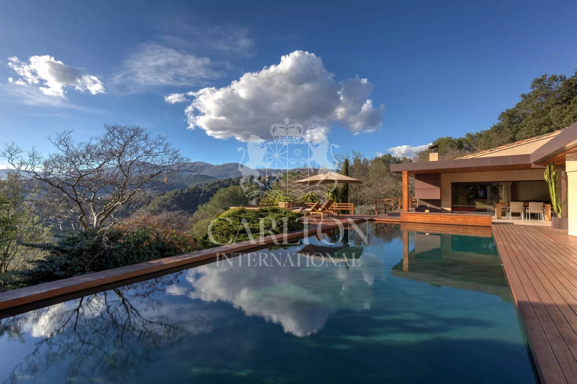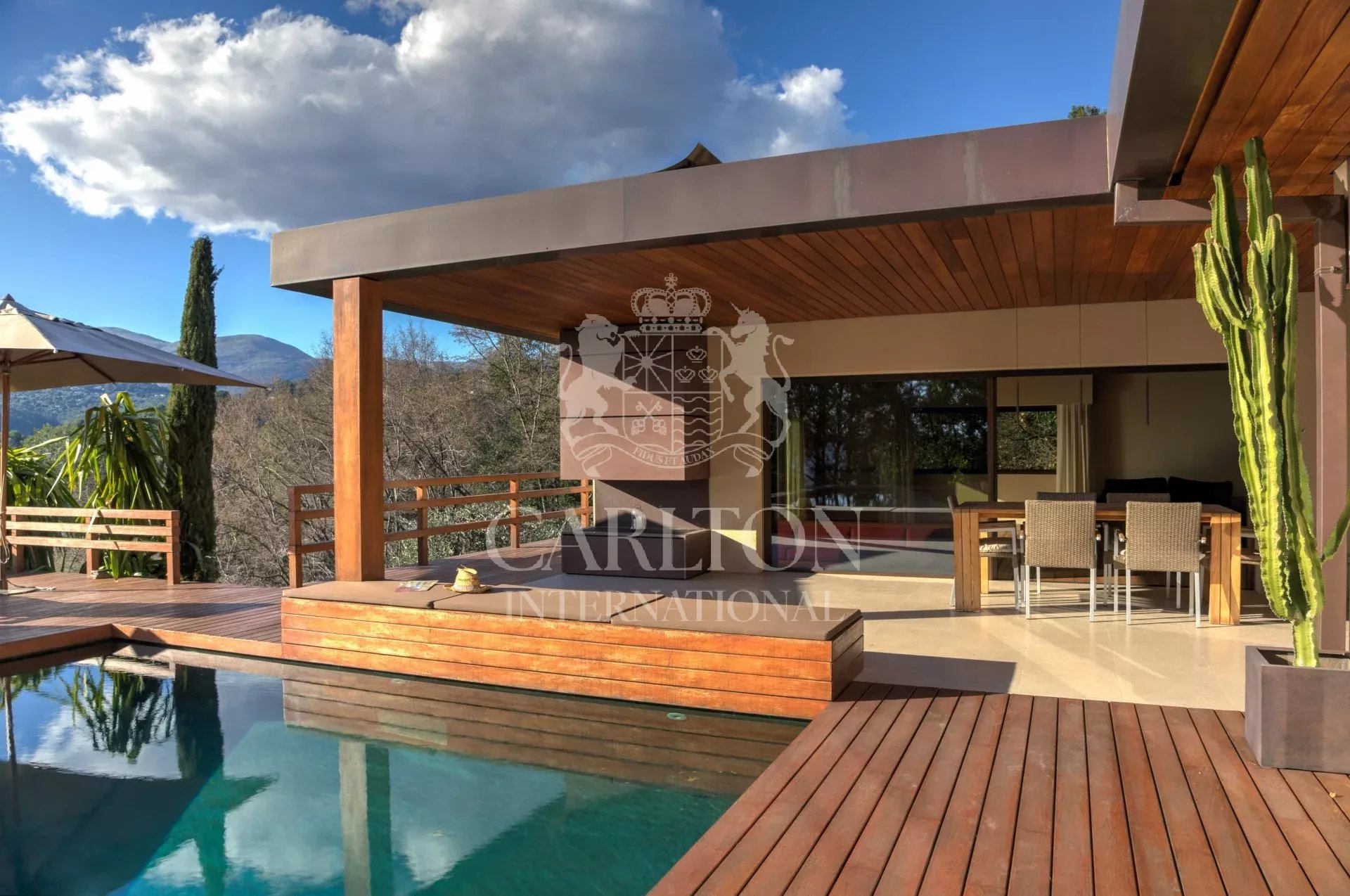 Magnifique villa contemporaine avec une vue imprenable sur les collines. Un panorama exceptionnel notamment lors des couchers de soleil. D’une superficie totale d’environ 410 m², elle comprend six chambres, y compris un appartement de deux pièces indépendant et un Garage de 6 places, réf. 6497.
