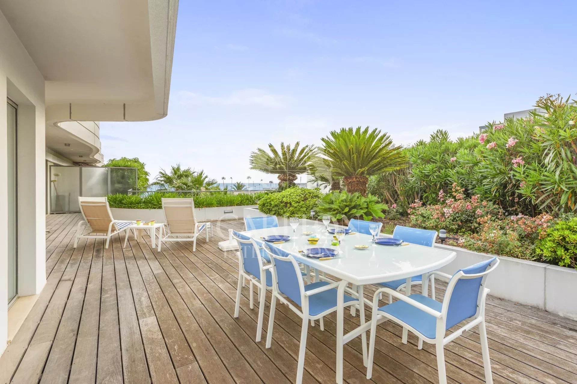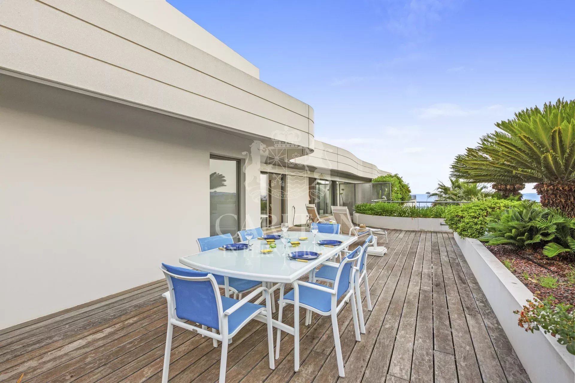 MENTON, dans une résidence récente en bord de mer à Garavan avec gardien, piscine, jacuzzi, sauna, et salle de sport; magnifique penthouse avec terrasse et jardin de 118 m².