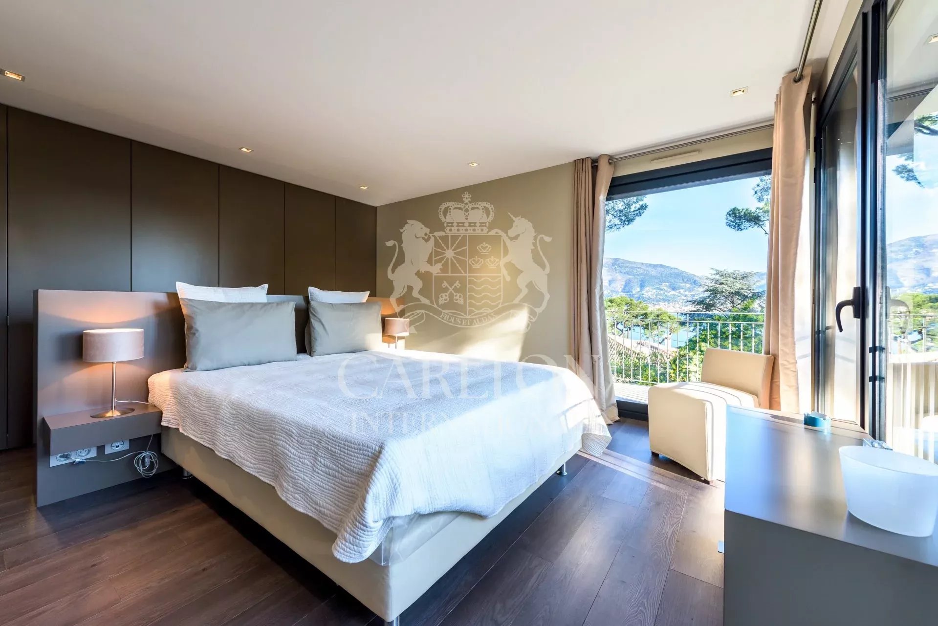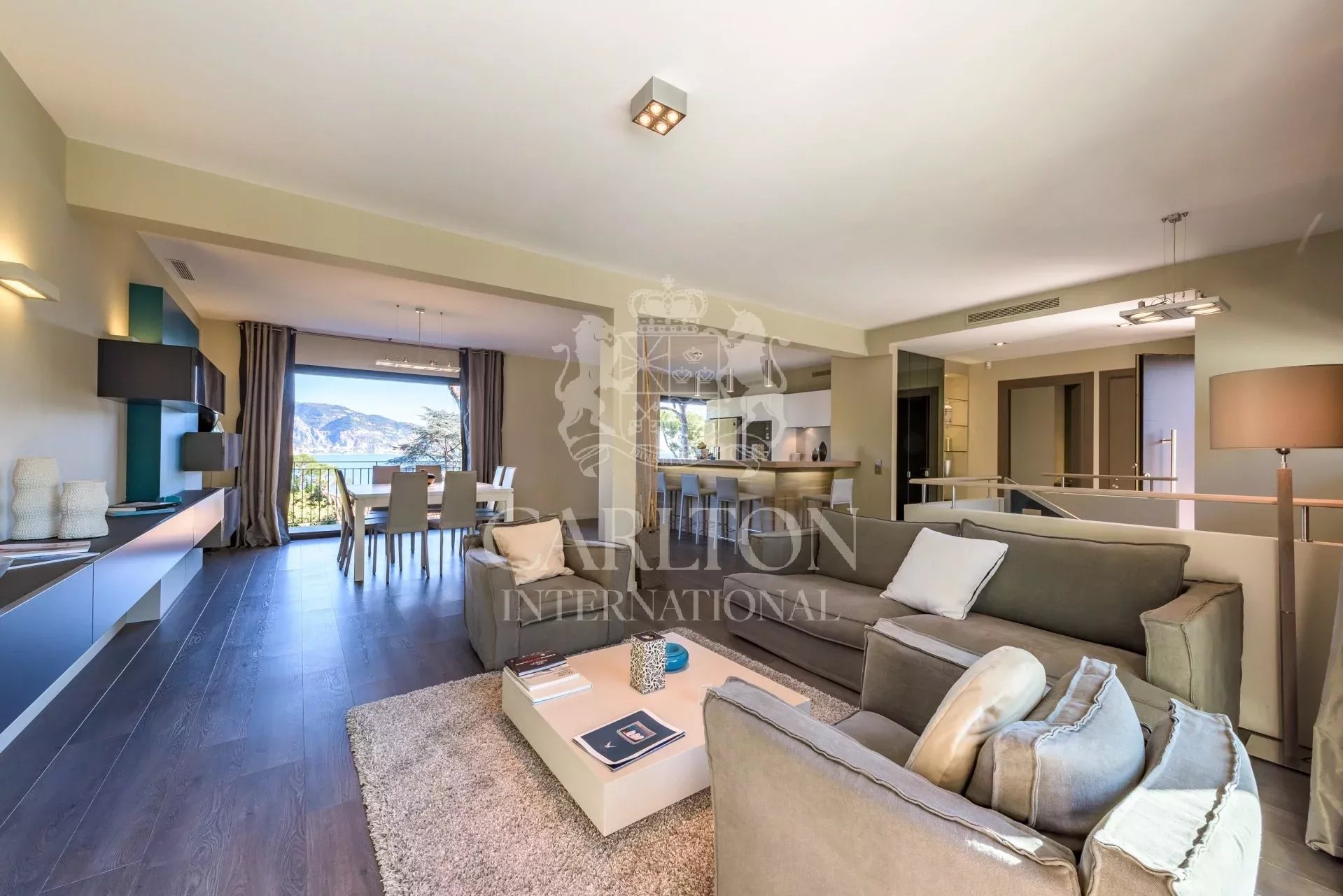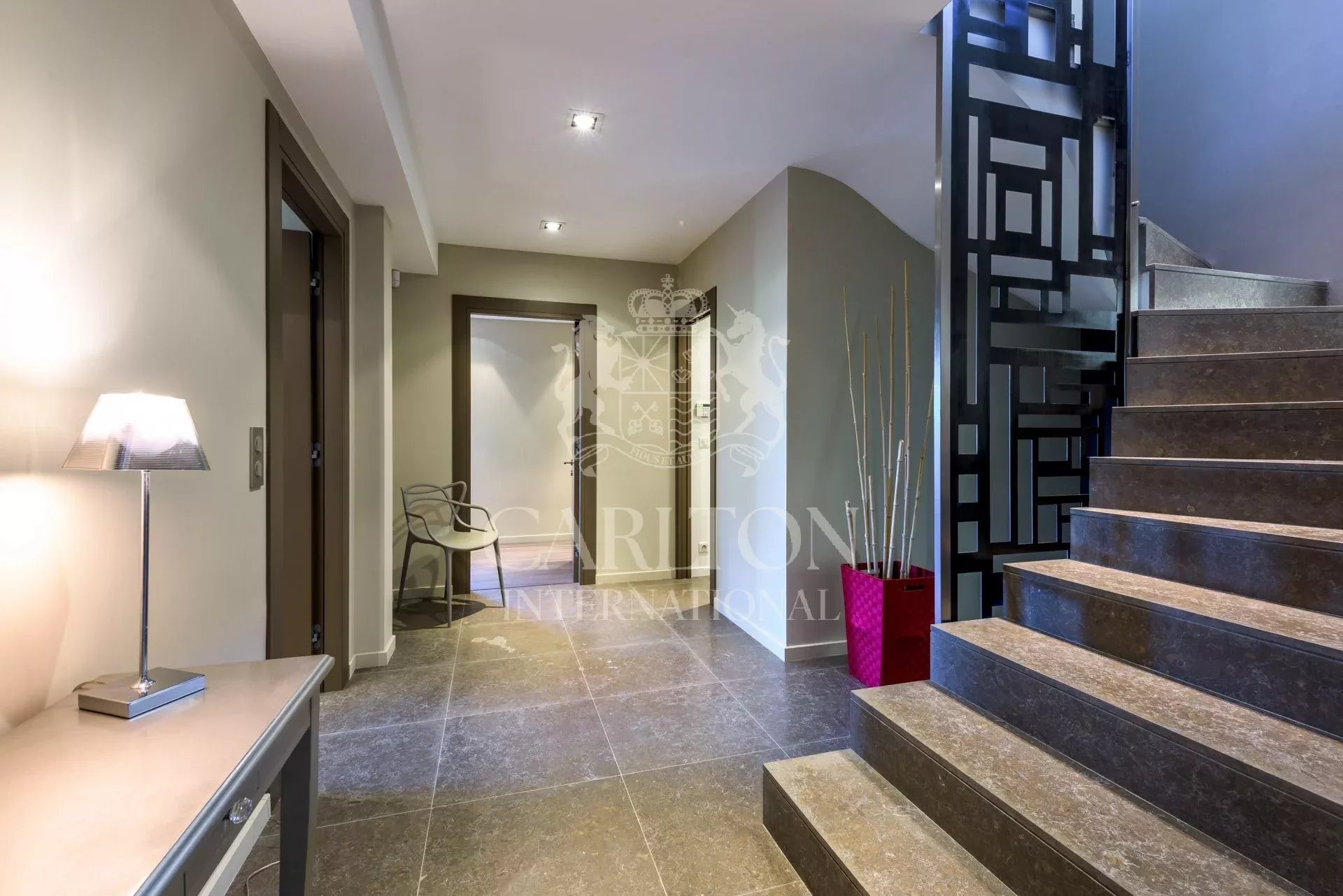 Belle villa d’environ 200m² située à Cap Martin dans un environnement calme et recherché, à proximité de Monaco. Bénéficiant d’une vue dégagée sur Menton, l’Italie et la mer, cette villa exposée Est-Ouest a été entièrement rénovée dans un style moderne et offre des prestations haut de gamme ainsi que des finitions d’une qualité supérieure. L’entrée ouvre sur une belle pièce de réception avec salon, salle à manger et cuisine américaine entièrement équipée le tout ouvrant d’un côté sur le jardin et la piscine et de l’autre sur une belle terrasse avec vue mer. Sur ce même niveau se trouve également une chambre double avec salle de bain et dressing ensuite. Le rez-de-jardin dispose de 3 chambres avec salle de douche et dressing ensuite, un bureau et une buanderie. Le jardin paysagé d’environ 1 115m² est agrémenté d’une piscine pouvant être chauffée et est entourée d’une belle terrasse avec salon d’été. Emplacement de parking pour 3 voitures, portail électrique, système d’alarme, vidéosurveillance. Ref 666LT