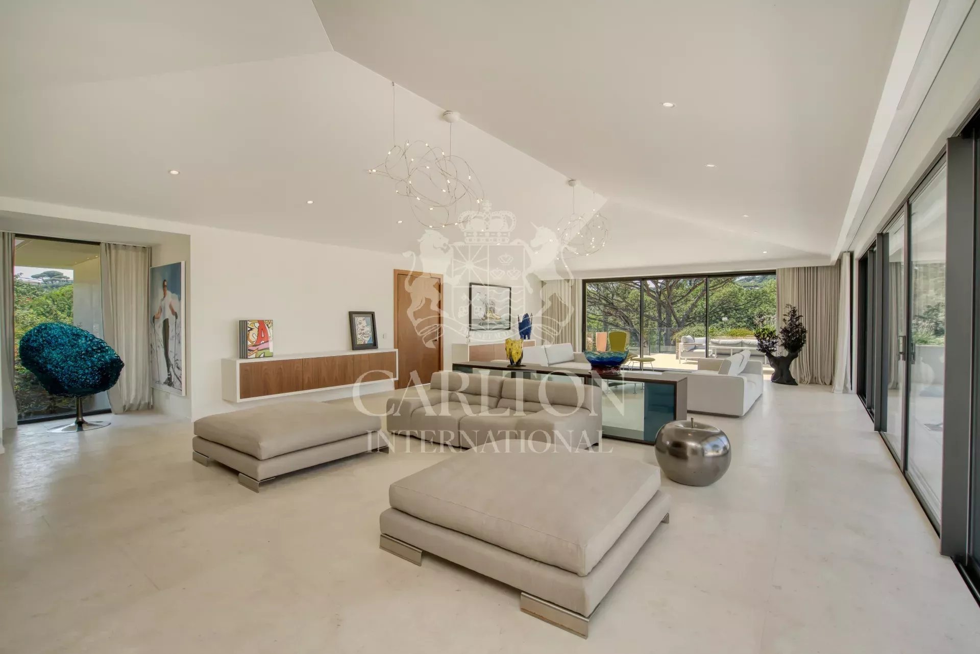 Saint-Tropez – Entrez dans ce havre de paix où le luxe s’unit à la nature. Cette villa contemporaine neuve vous accueille avec ses cinq chambres, dont une somptueuse suite parentale. La cuisine et la salle à manger s’ouvrent sur un vaste salon baigné de lumière. À l’abri des regards, la piscine chauffée vous promet des moments de quiétude et de sérénité, pour un séjour véritablement exceptionnel