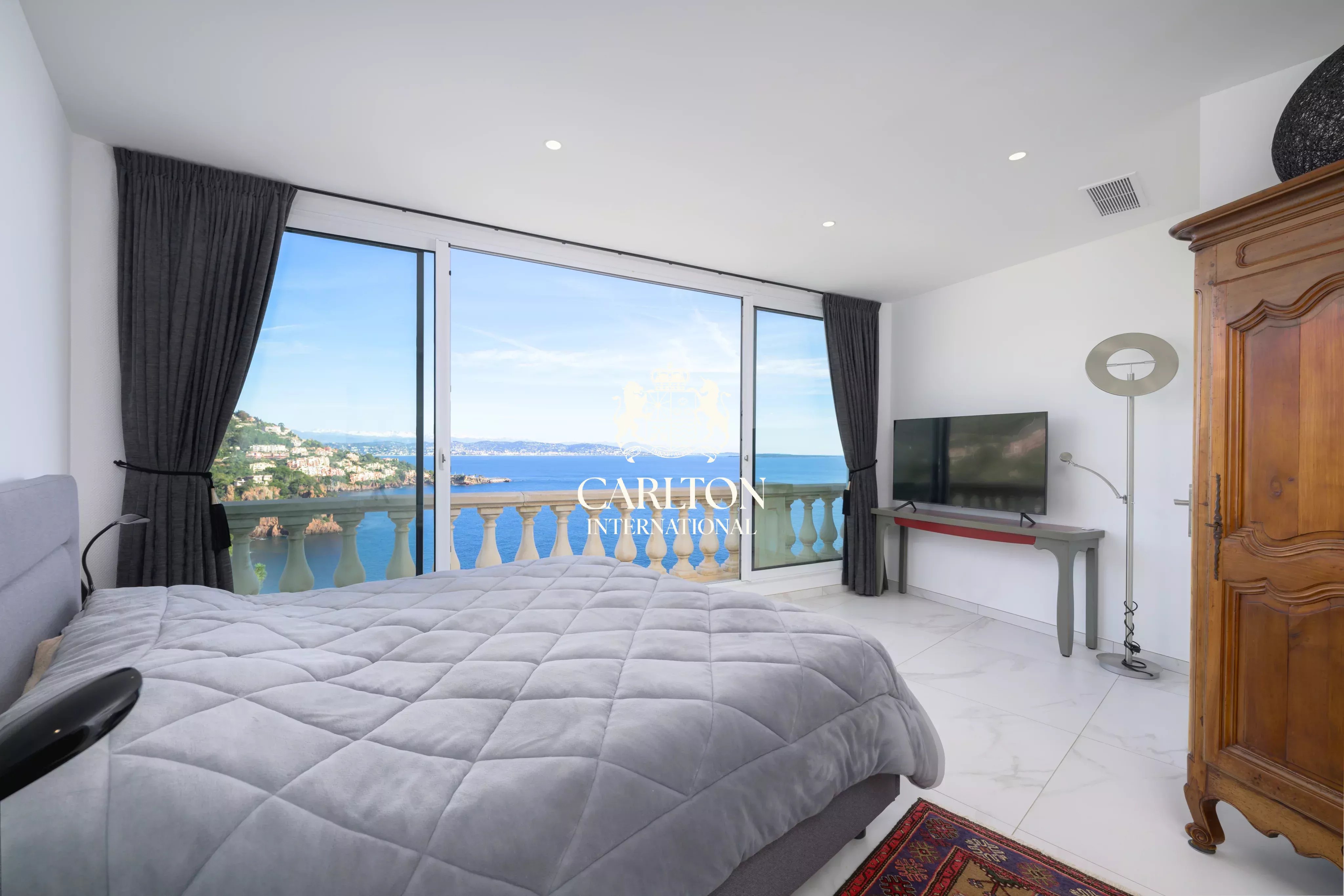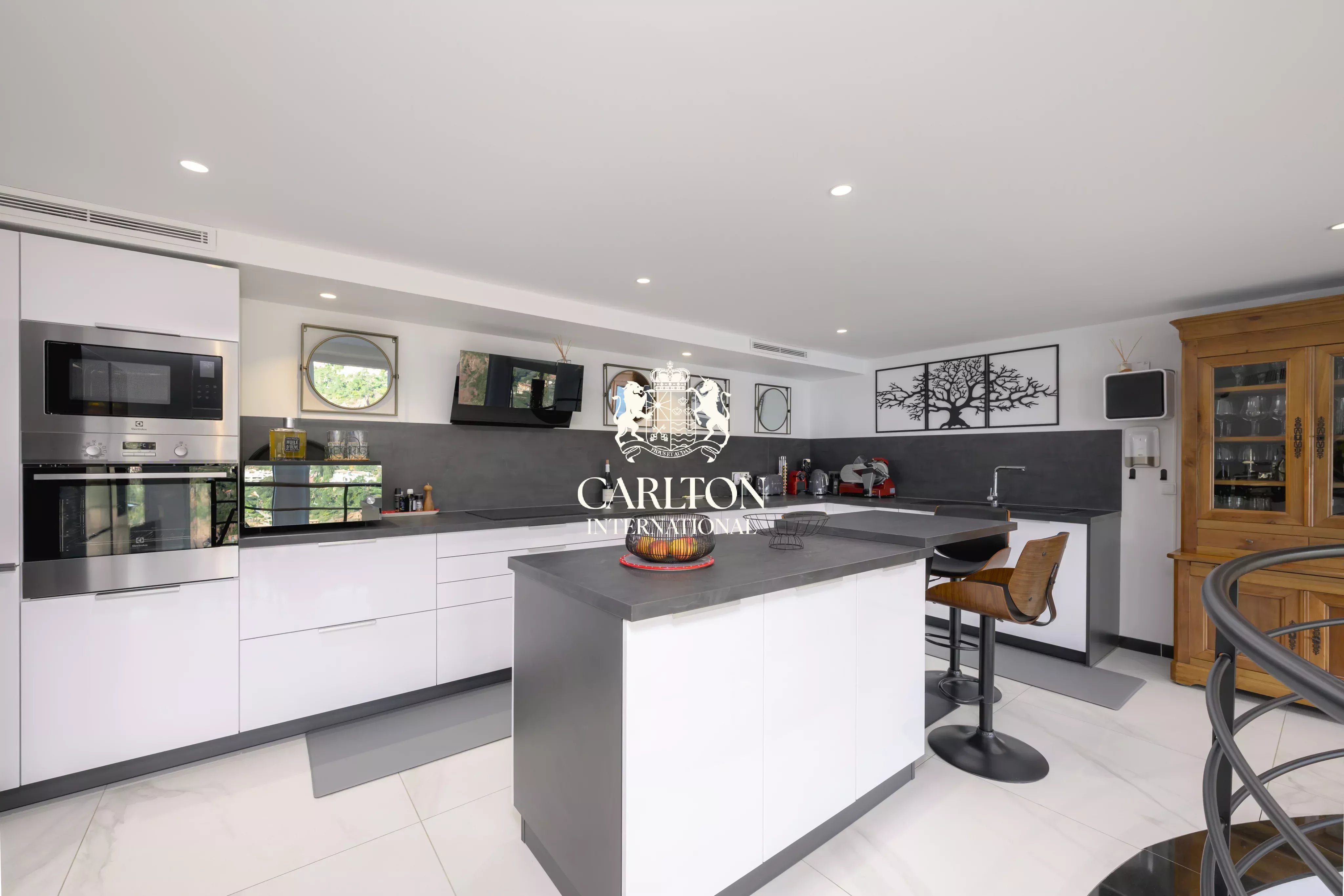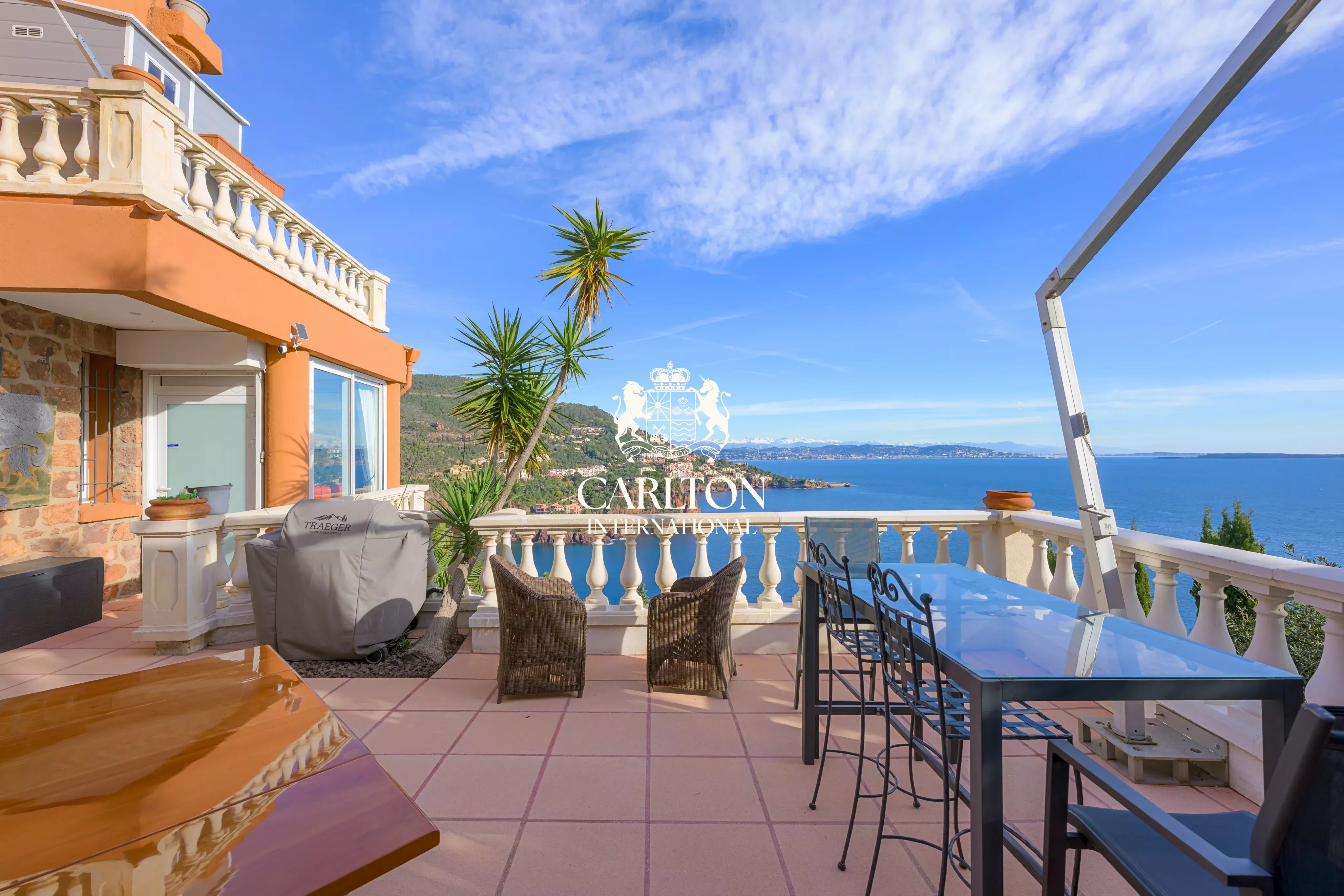 Dans un secteur privilégié et résidentiel, au cœur d’un domaine fermé, dans une copropriété de trois lots et en position dominante, l’appartement offre une vue panoramique sur la mer, Port la Galère, la baie de Cannes et les Iles de Lérins.