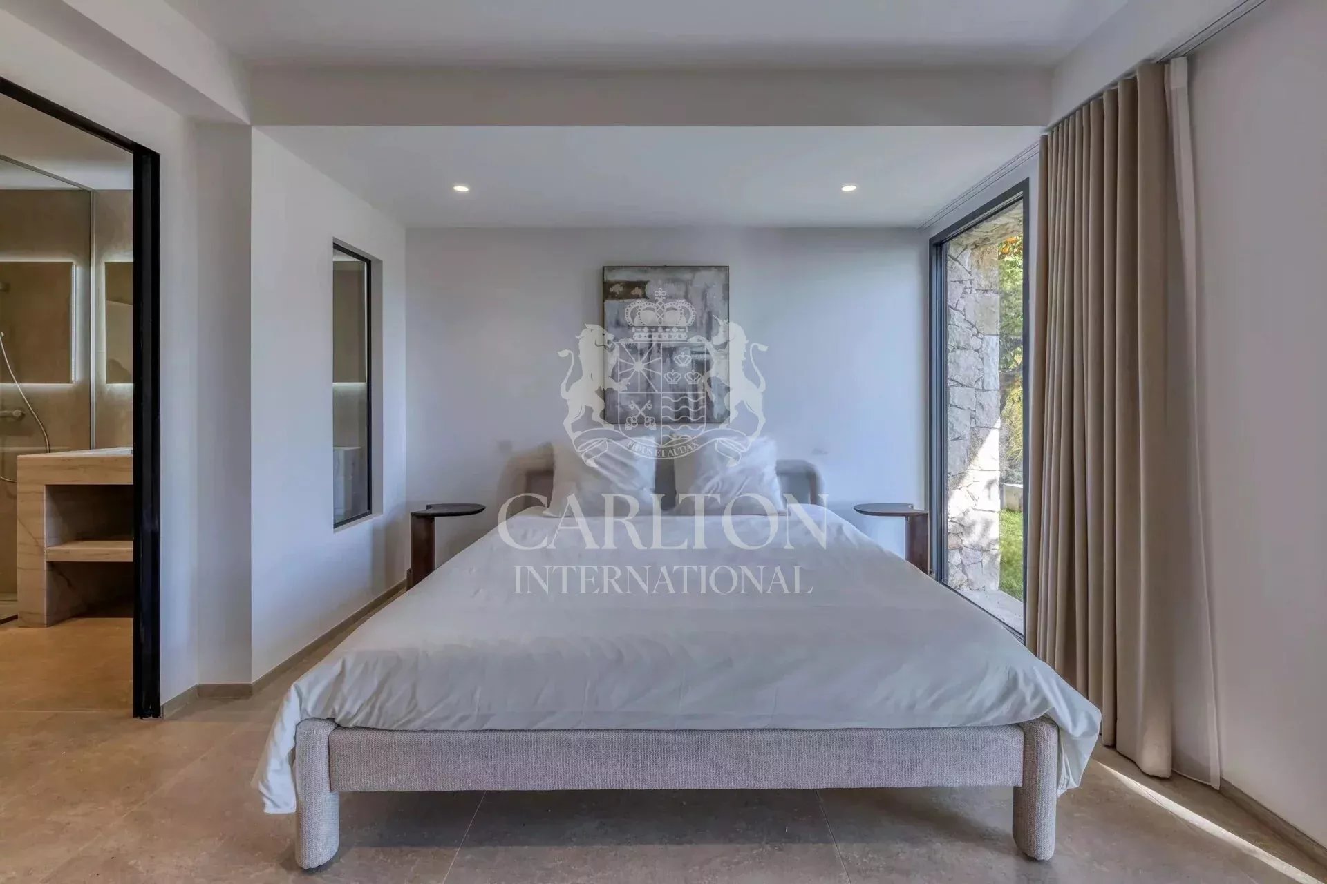 Le niveau inférieur comprend quatre chambres élégantes et trois salles d’eau modernes. Chaque pièce est équipée d’une climatisation individuelle afin d’assurer un confort optimal tout au long de l’année.