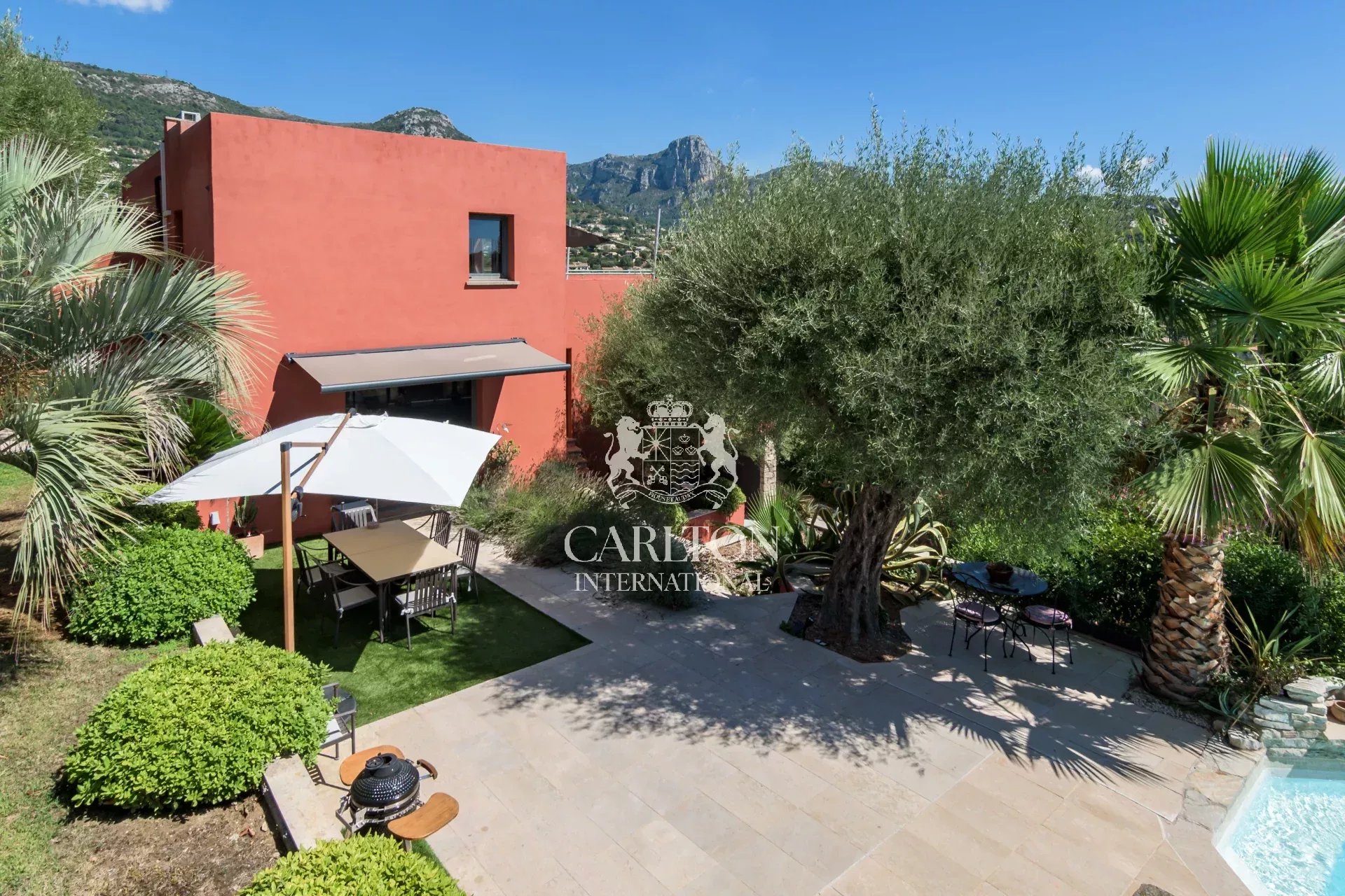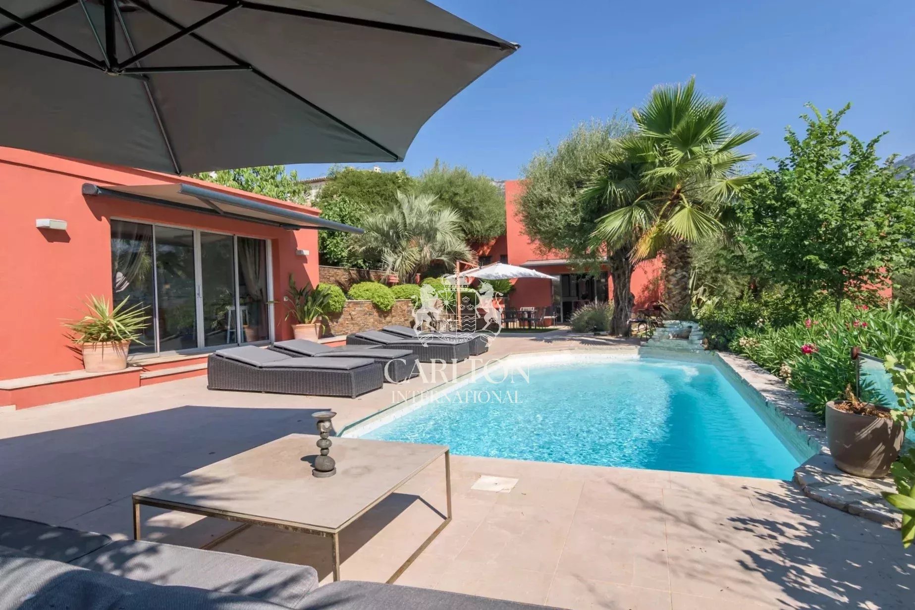 Cette propriété moderne et lumineuse d’environ 300 m2 profite d’une superbe vue sur les collines et les montagnes environnante. Elle offre tout le confort avec une climatisation réversible totale, un chauffage au sol en pome à chaleur et/ou chaudière.