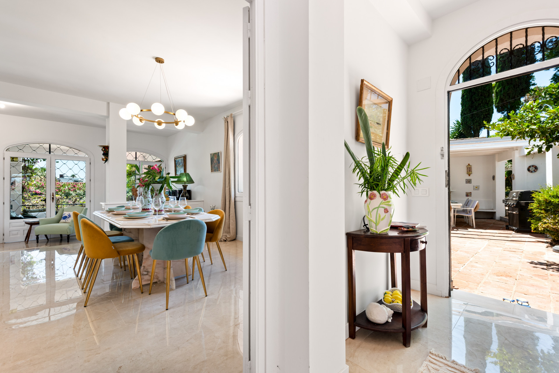Profitez d’un séjour inoubliable dans cette charmante villa de style andalou située à Nueva Andalucía. Doté de 4 chambres et 4 salles de bains, il offre beaucoup d’espace et de confort pour les familles ou les groupes. Détendez-vous dans la piscine d’eau salée chauffée, restez au frais avec la climatisation individuelle dans chaque chambre, et détendez-vous dans le patio andalou avec barbecue extérieur. Une véritable oasis de confort et de style sur la Costa del Sol !