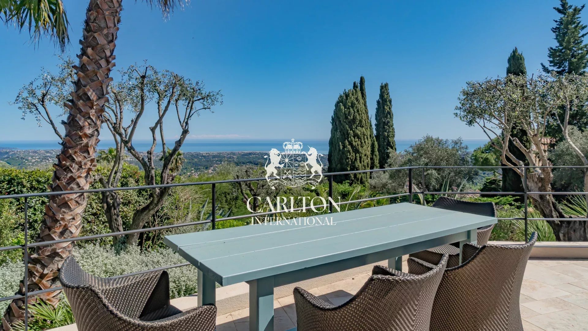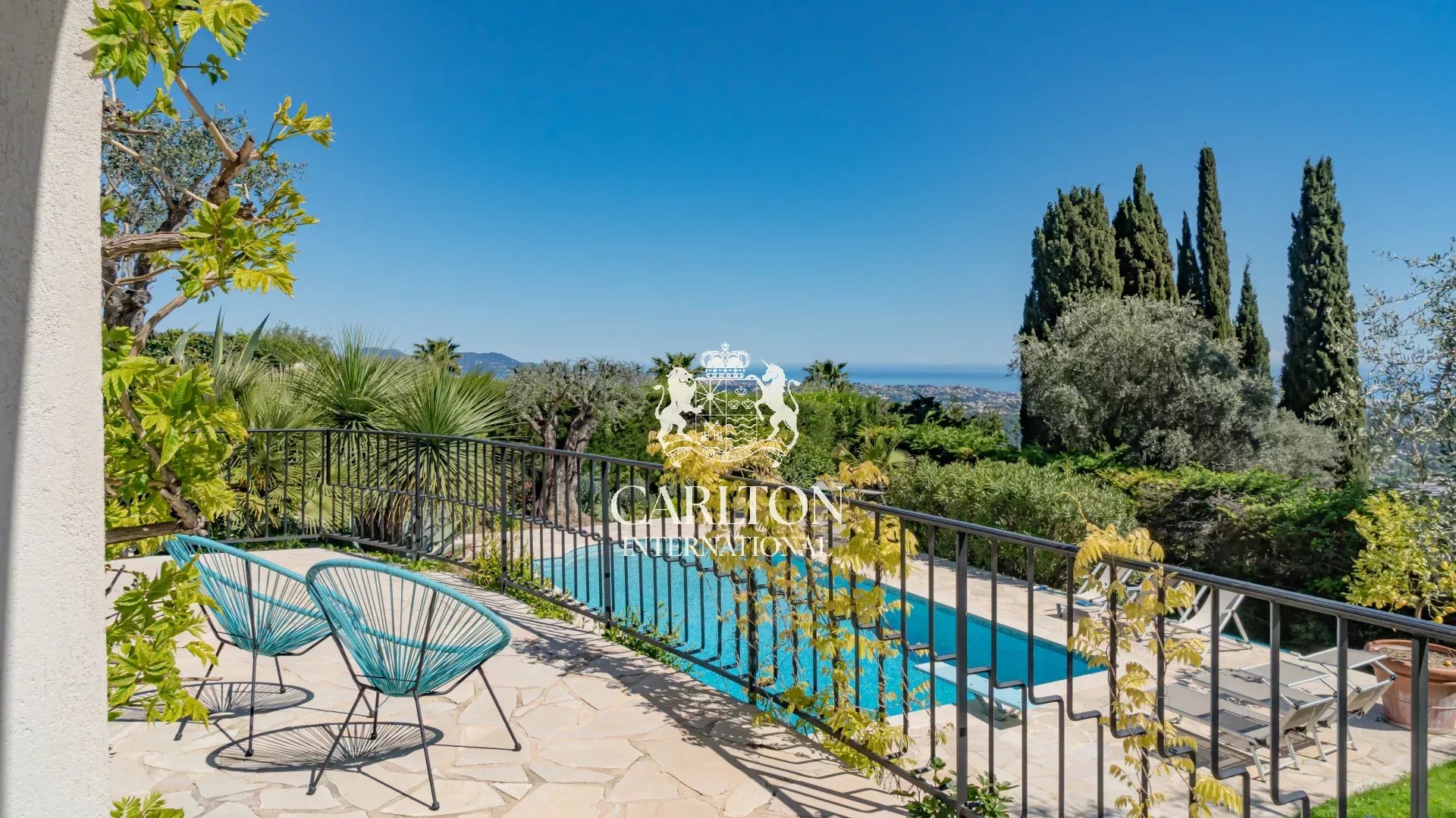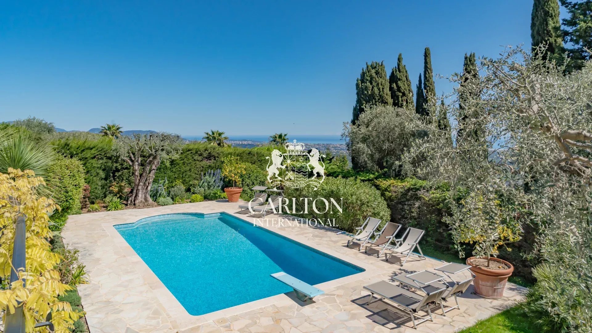 Cachée dans les hauteurs de Vence, cette propriété d’exception offre une vue panoramique saisissante sur la Méditerranée , du Cap Ferrat au Cap d’Antibes.