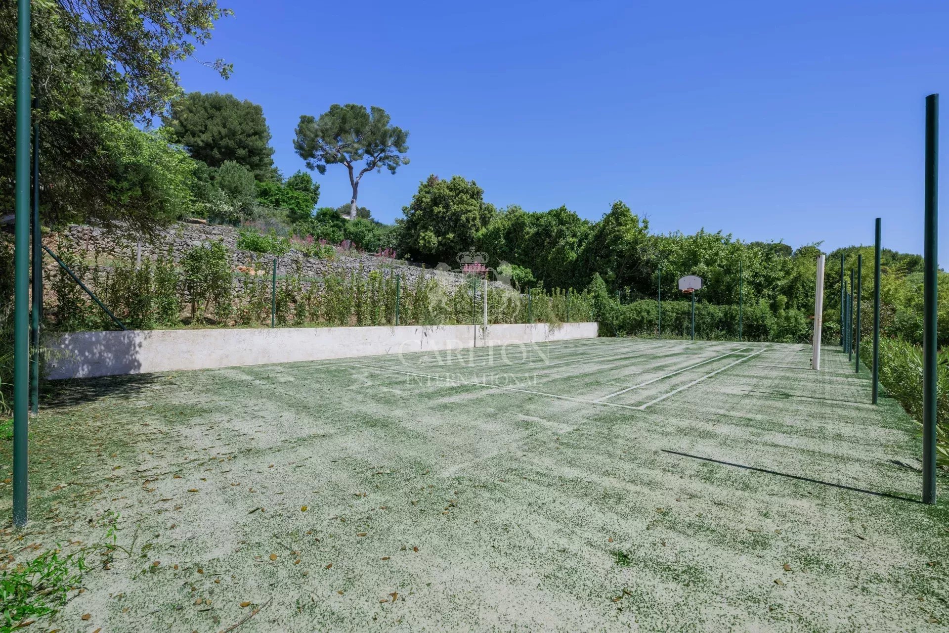 Vue mer panoramique, terrain de tennis