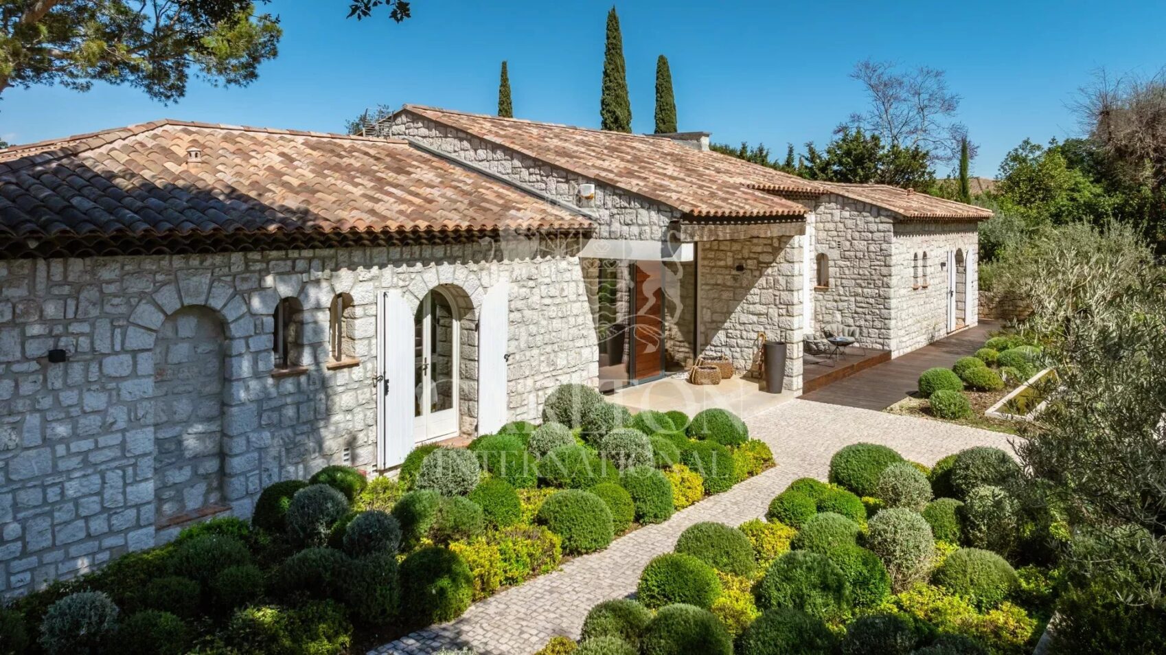 In einem der sichersten und begehrtesten Gebiete der C’te d’Azur, 5 Minuten vom Dorf und dem Meer und 15 Minuten vom Flughafen entfernt, befindet sich diese Villa;In der Nähe des Flughafens, von Nizza und Cannes, wunderschöne Villa aus Stein, komplett ebenerdig, mit zeitgenössischer Innenausstattung und hochwertiger Renovierung.