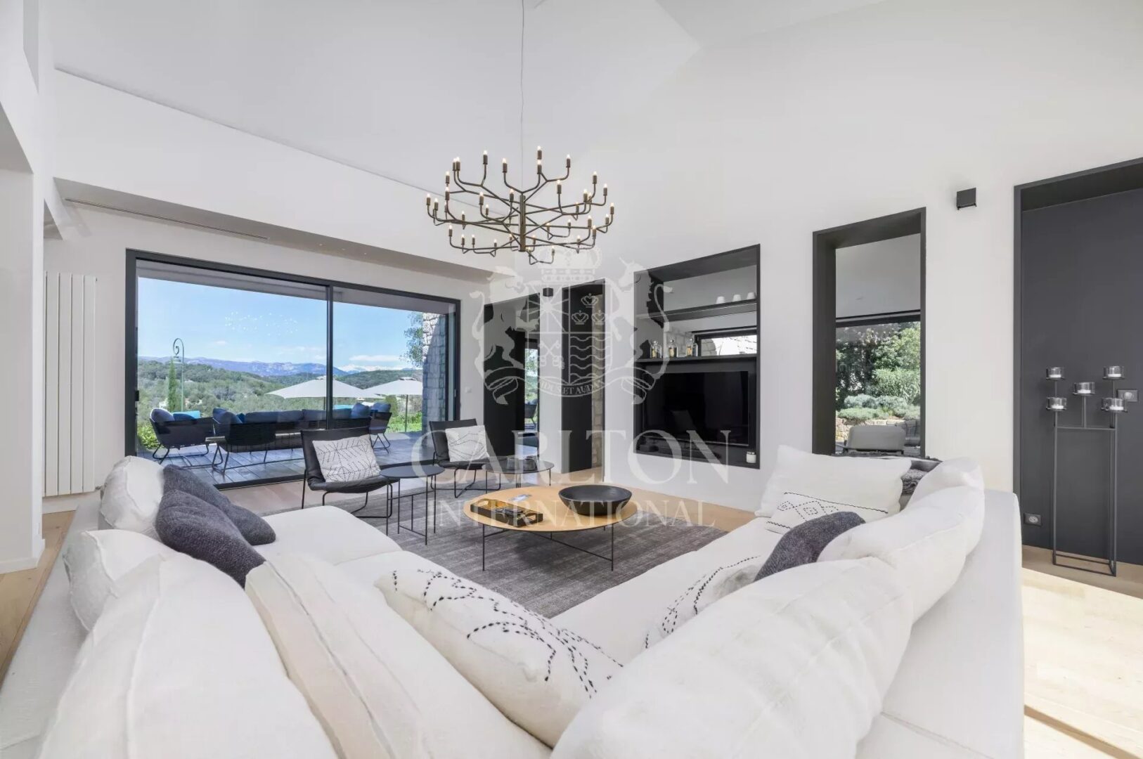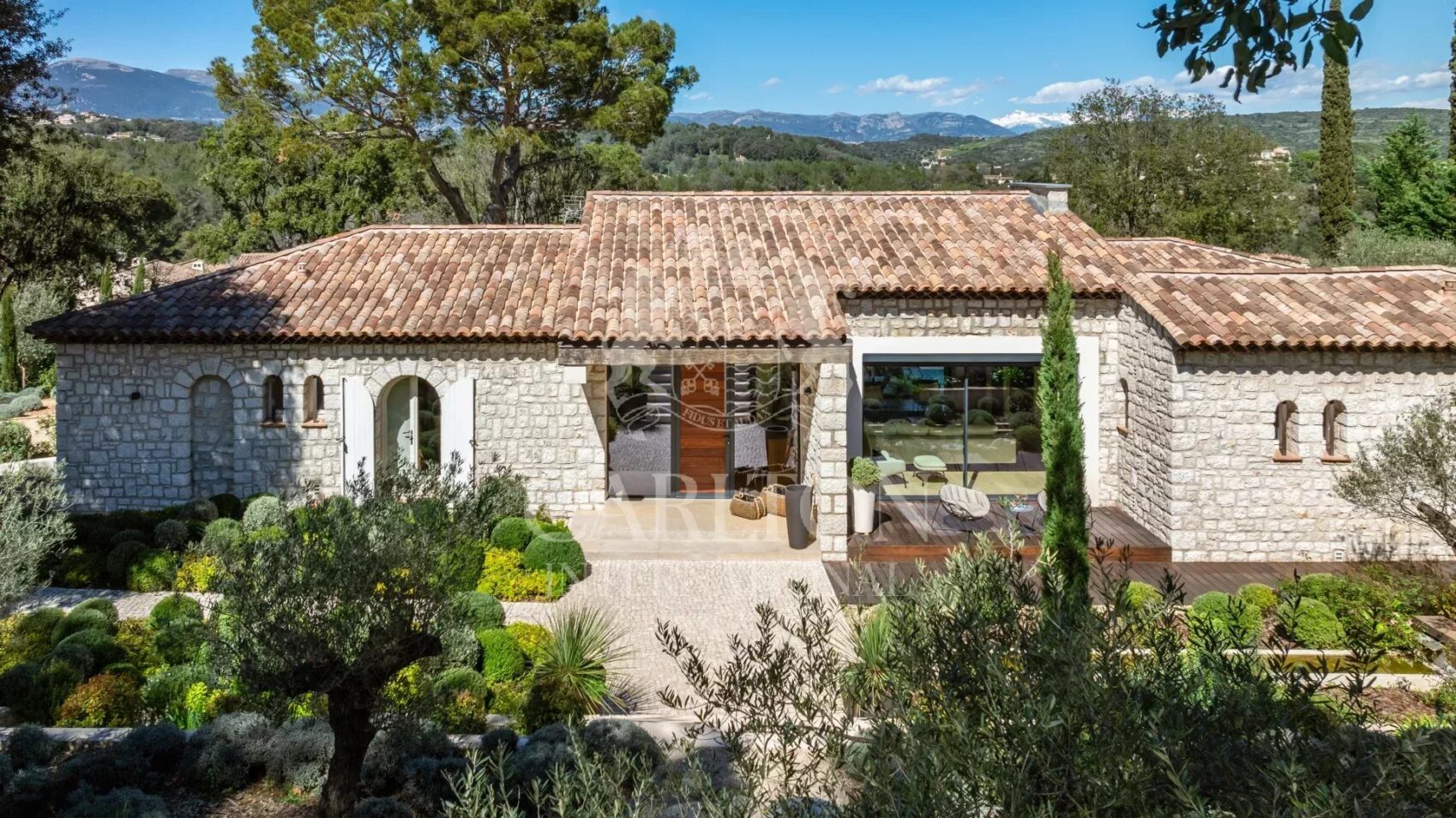 BIOT : Luxusvilla aus Stein mit zeitgenössischem Interieur und herrlichem Panoramablick auf Hügel und Berge