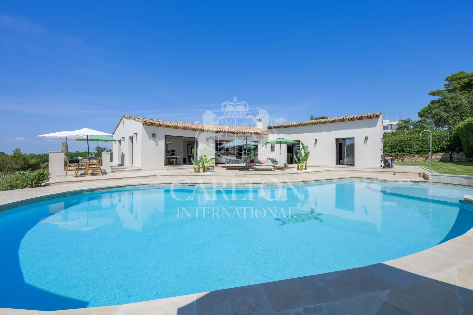 This sumptuous property of around 416m², recently tastefully renovated, is located in the prestigious Super Cannes district. Set in spacious grounds of around 3,000m² facing south-east, this beautiful villa offer sea views. The interior of the villa comprises five luxurious suites, guaranteeing privacy and comfort for you and your guests, as well as a dedicated staff studio.
