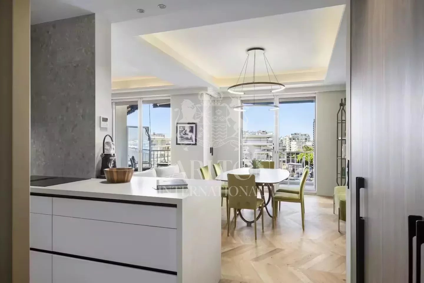 Vor dem Port Canto, in einer Art-Deco-Residenz mit hohem Standard, wunderschöne 4-Zimmer-Wohnung, ca. 100m2, für bis zu 6 Personen mit hochwertigen Dienstleistungen und einem herrlichen Panoramablick auf den Hafen und das Meer.