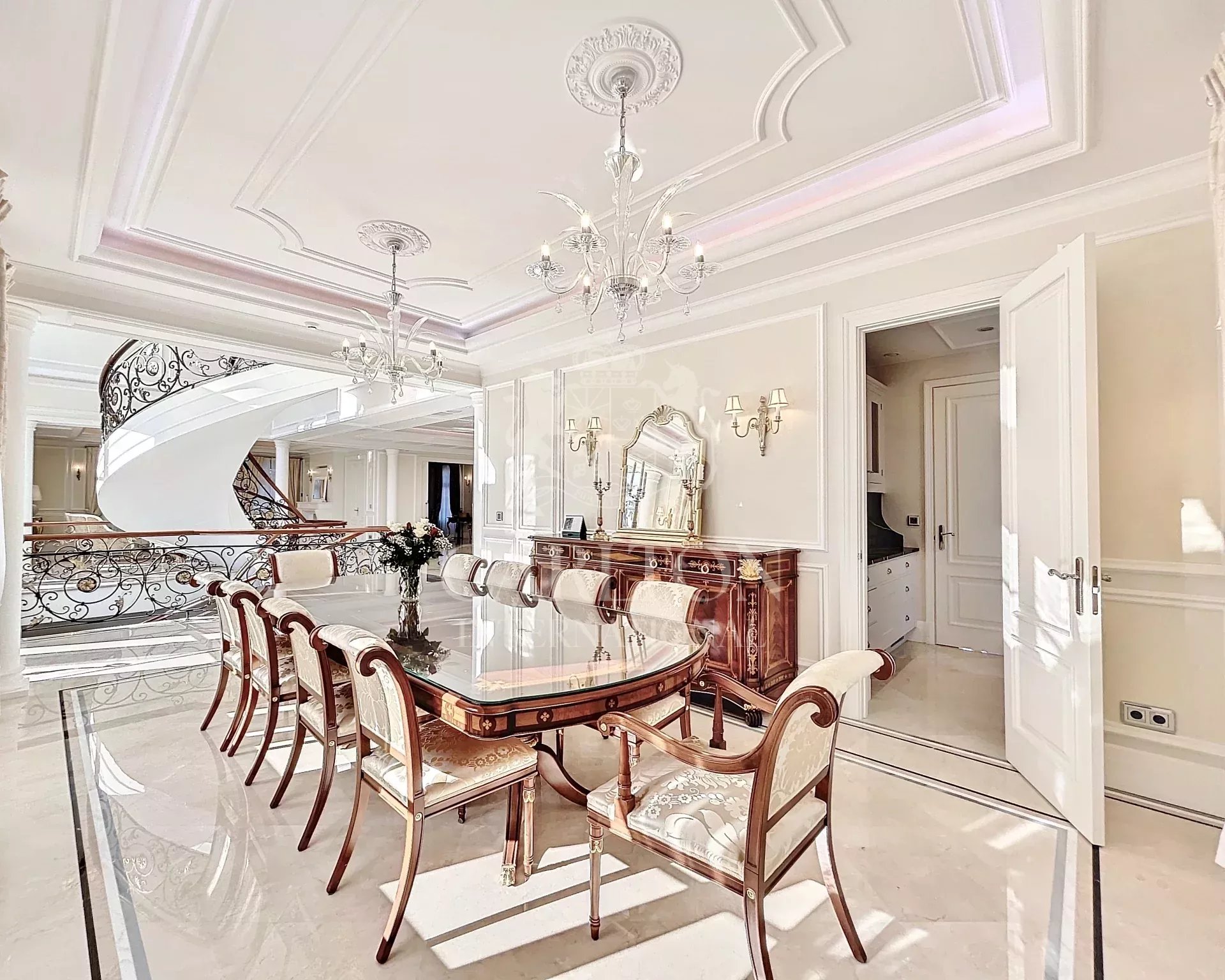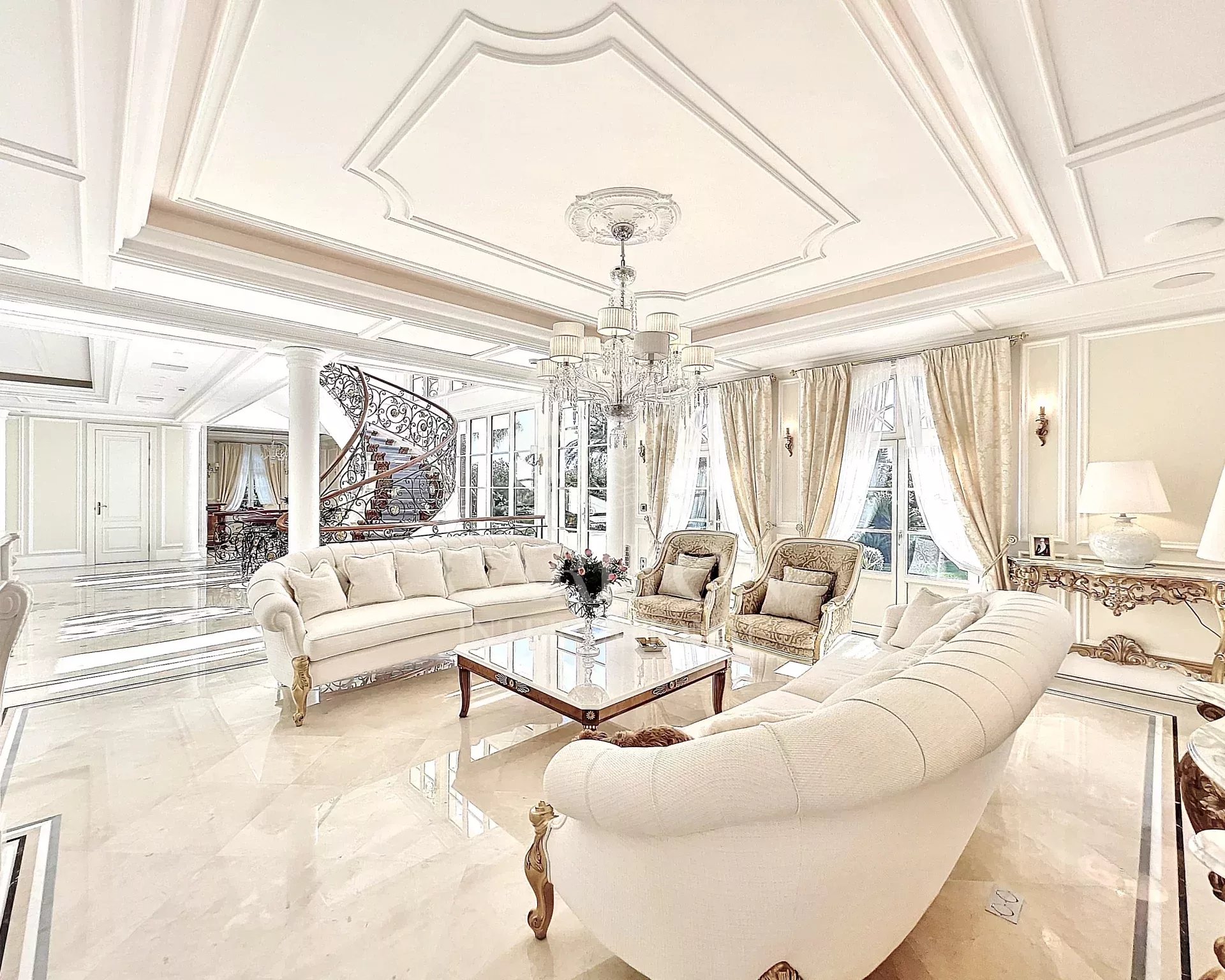 Auf den Hügeln von Cannes gelegen, ist dieser kürzlich fertiggestellte Palast ein Musterbeispiel für Luxus und architektonische Größe. Er erstreckt sich über eine Fläche von ca. 950 m² auf einem Grundstück von ca. 3.300 m² und wurde sorgfältig entworfen, um unvergleichliche Lebensräume zu bieten.
