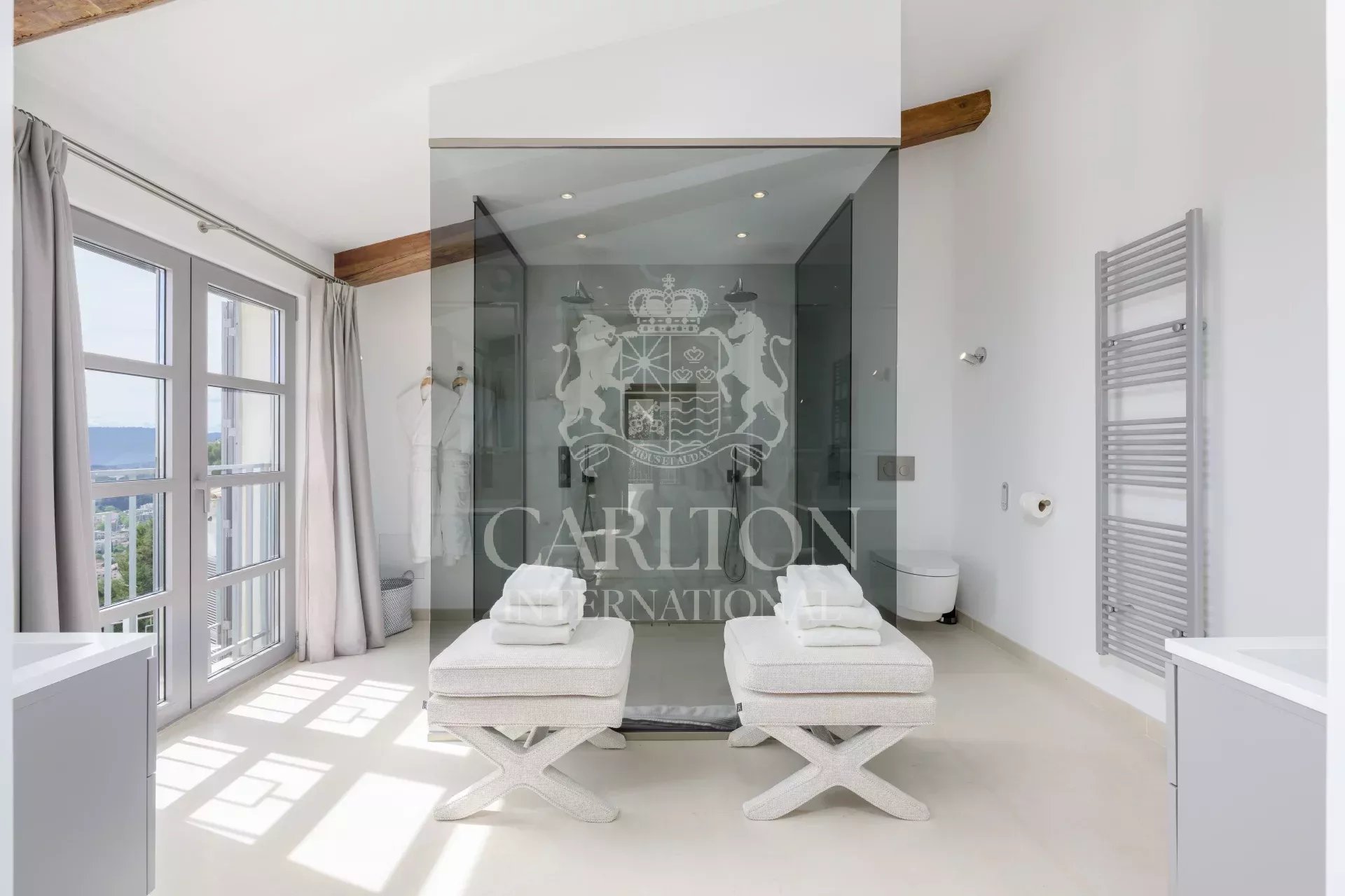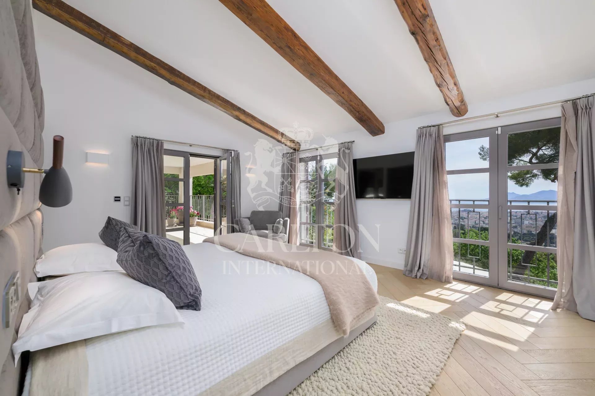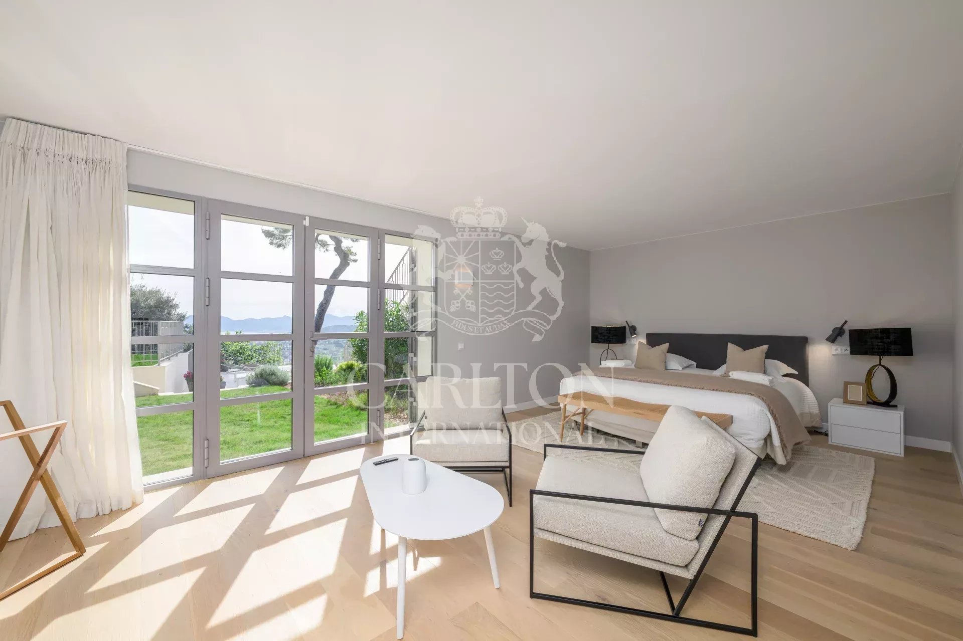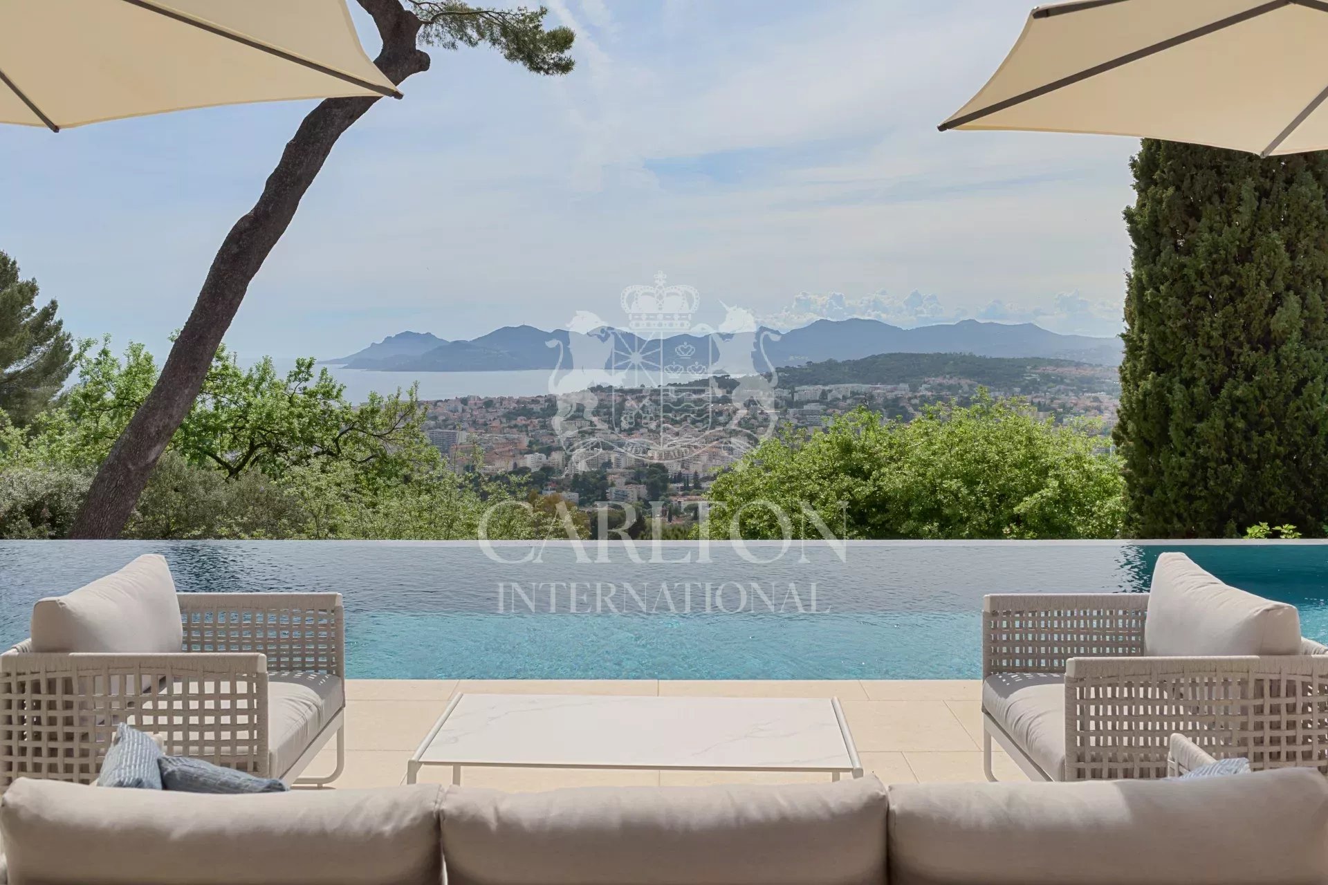 Genießen Sie den Panoramablick auf das Meer und die Bucht von Cannes, der einfach spektakulär ist. Völlig abgeschirmt von den Blicken der Gäste garantiert es Privatsphäre und Ruhe.