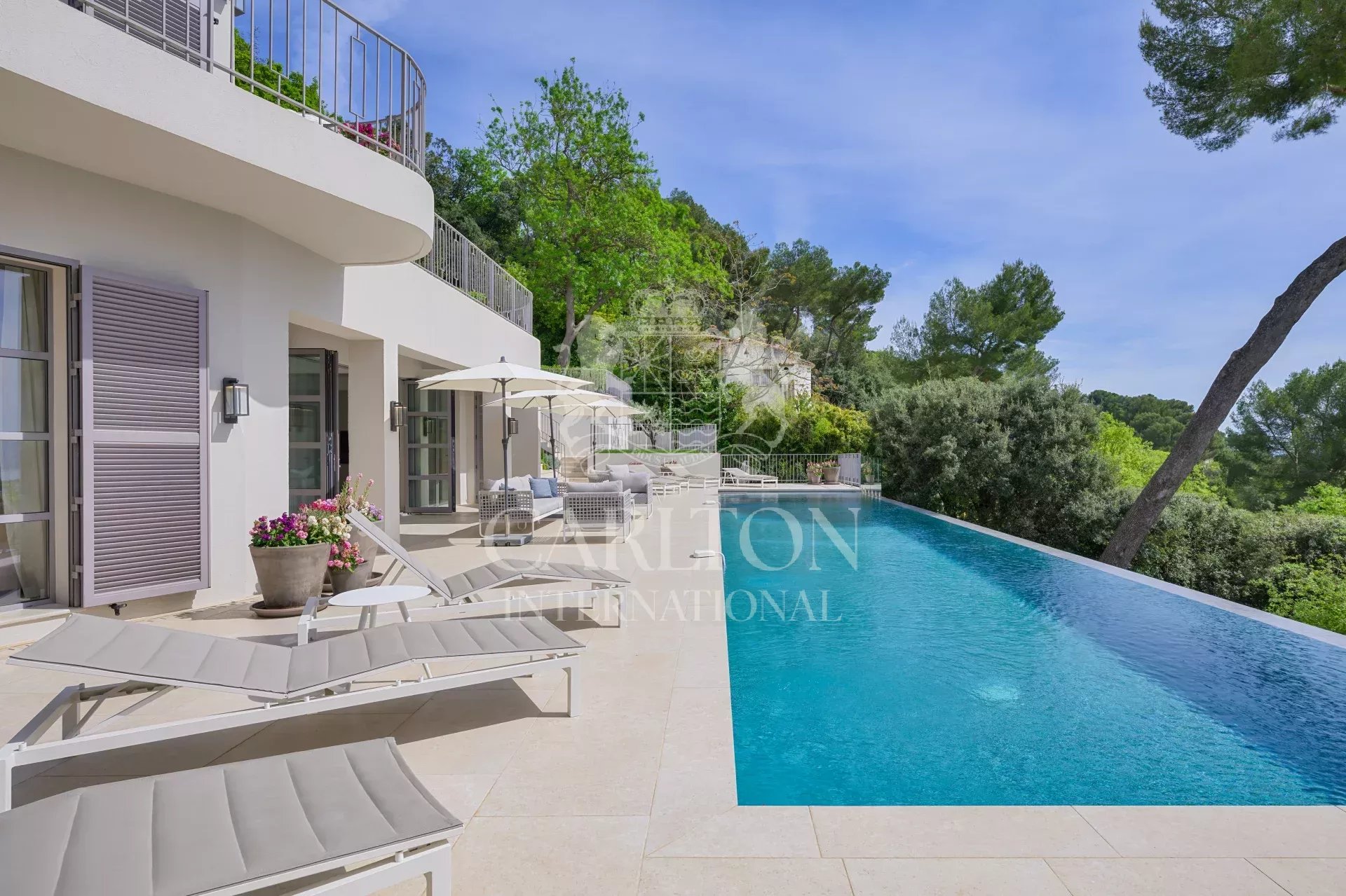 Diese prächtige Villa liegt auf den Anhöhen von Cannes und bietet eine idyllische Umgebung für einen unvergesslichen Urlaub.