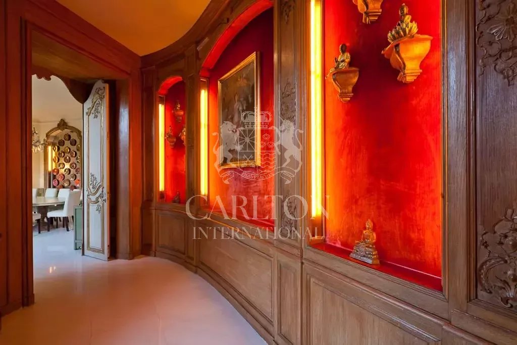 – Empfangsräume mit einem doppelten Wohnzimmer, einem Esszimmer und einer Bibliothek. Das zentrale Wohnzimmer ist 82 m² groß, mit Marmorböden ausgestattet und verfügt über einen Plasma- und Satellitenfernseher. Die 65 m² große klassische Bibliothek bietet antike und kostbare Holzvertäfelungen, die mit Fresken bedeckt sind.