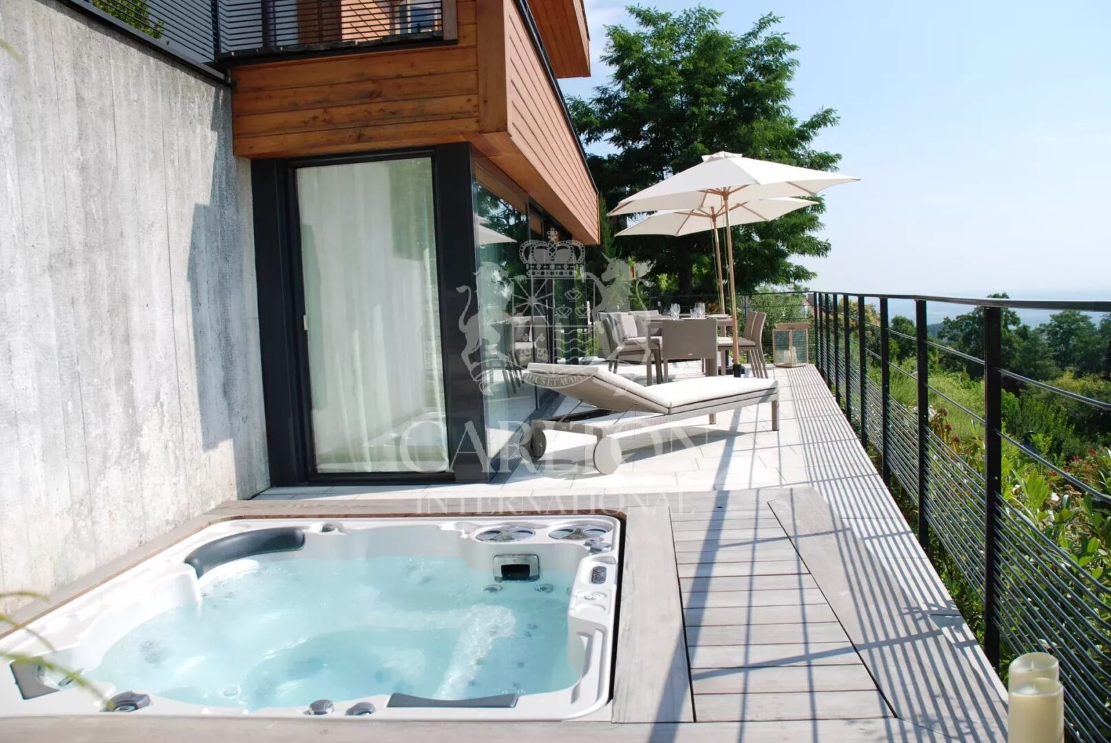 Das Anwesen verfügt über einen Spa- und Wellnessbereich mit Sauna, Spa, Fitnessraum, Ruhebereich und einer großen Terrasse mit spektakulärer Aussicht.