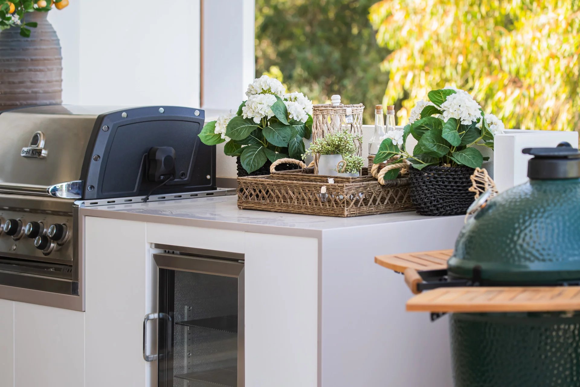 Gourmetküche: Eine maßgeschneiderte moderne Küche, ausgestattet mit hochwertigen Gaggenau Geräten, bietet kulinarischen Liebhabern. Sein offenes Design verbindet sich nahtlos mit den Wohnbereichen und fördert einen harmonischen Fluss im Hauptgeschoss.
