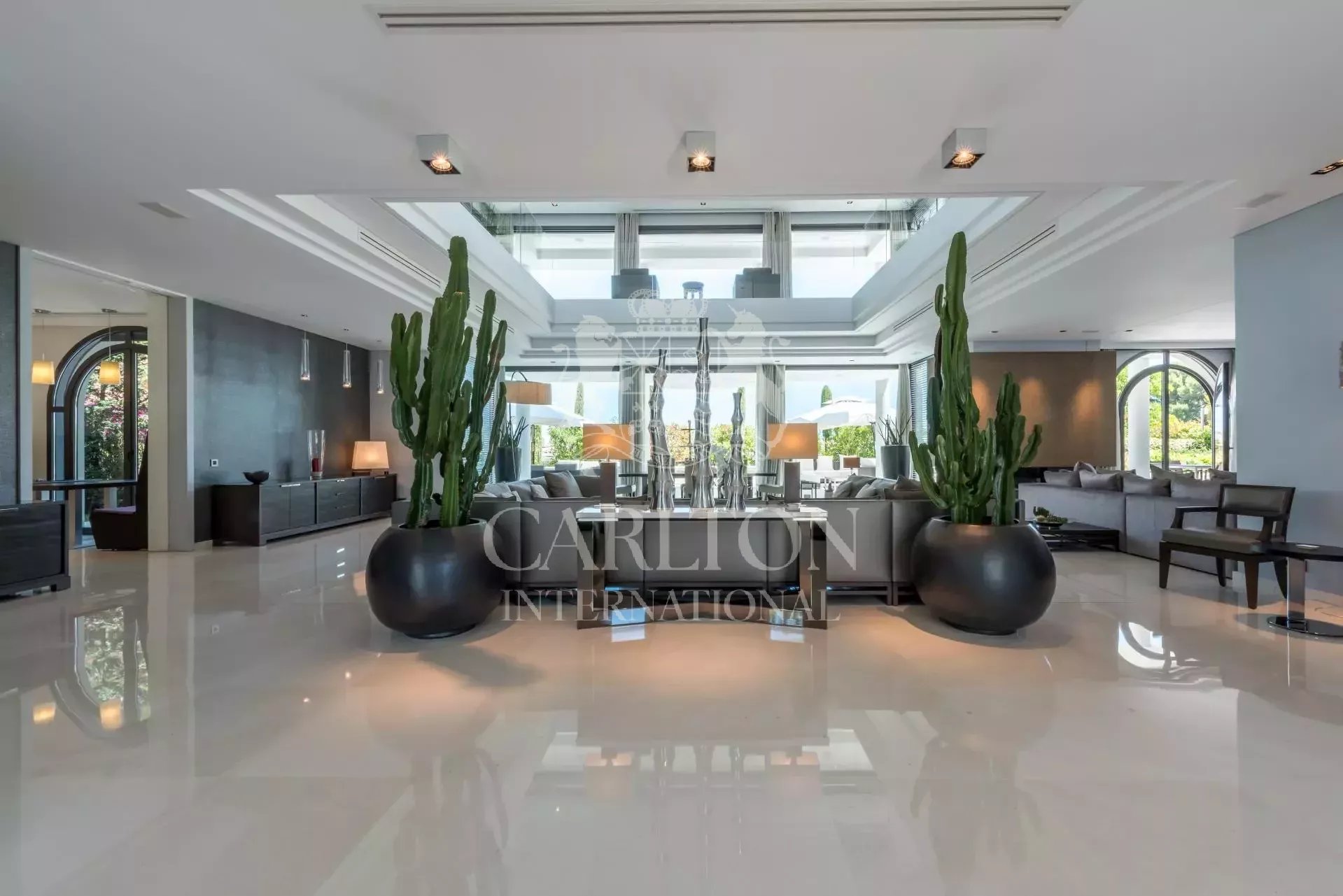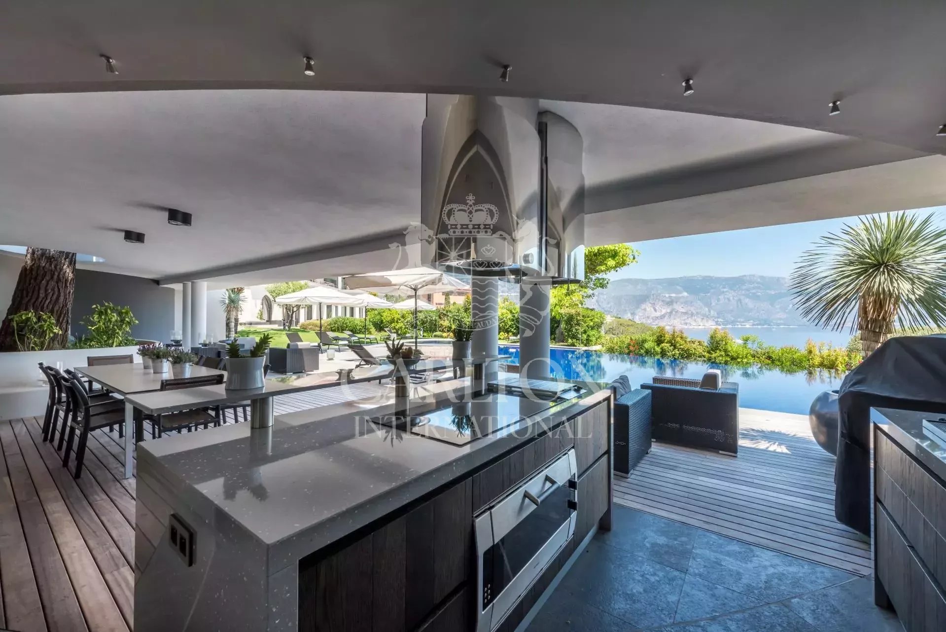 Nur 10 Kilometer von Nizza und Monaco entfernt befindet sich dieses wunderschöne Anwesen in Saint Jean Cap Ferrat, das von einem außergewöhnlichen Meerblick profitiert. Diese einzigartige Villa erstreckt sich über drei Ebenen, die mit einem Aufzug erreichbar sind, und bietet mit 8 Schlafzimmern Platz für bis zu 16 Personen. Das Hauptschlafzimmer bietet ein außergewöhnliches Panorama entlang der Küste von Eze bis Monaco und reicht bis nach Italien. Dieses komfortable und anspruchsvolle, voll klimatisierte Anwesen wurde in einem raffinierten zeitgenössischen Stil eingerichtet. Die Qualität der Oberflächen, die hochwertigen Installationen und Annehmlichkeiten, darunter ein Aufzug, Heimkino, Dampfbad, Sauna, Fitnessraum und eine Garage für 7 Autos mit Waschplatz, unterstreichen den außergewöhnlichen Charakter dieses Hauses von hohem Standard. Der flache Garten bietet eine große Vielfalt an Bäumen und führt zum beheizten Pool (20 Meter) mit Jacuzzi und dem voll ausgestatteten Poolhaus. ref 458