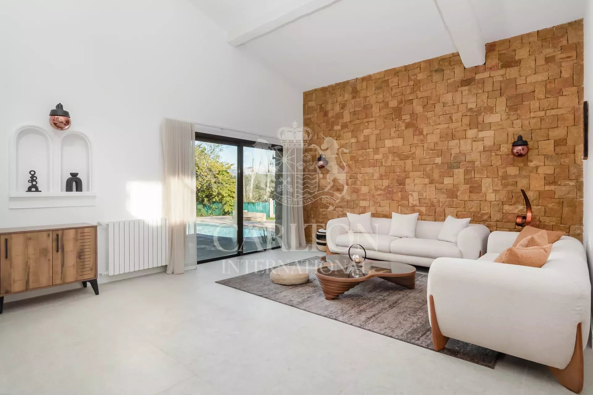 Eingebettet in ein grünes Umfeld, bietet diese Villa ein außergewöhnliches Wohnambiente, umgeben von einem herrlichen, 2.528 m² großen Garten mit Swimmingpool.