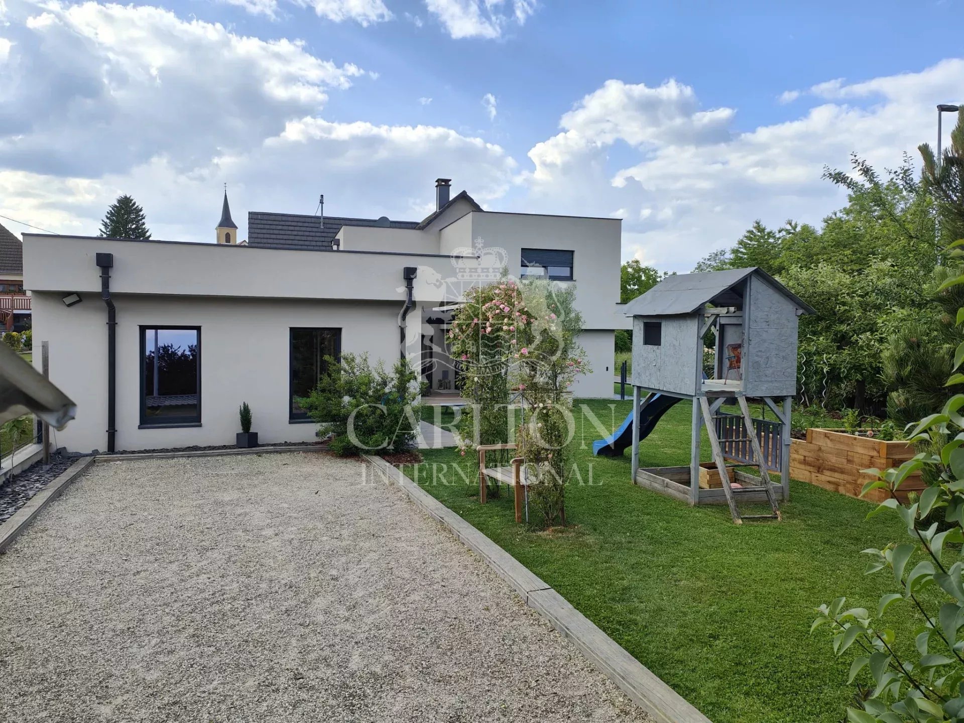 This rare gem, a house built just 10 years ago, is situated in a small, idyllic Alsatian village, only a few minutes’ drive from Wissembourg, Wörth am Rhein, or Rastatt-Baden-Baden.