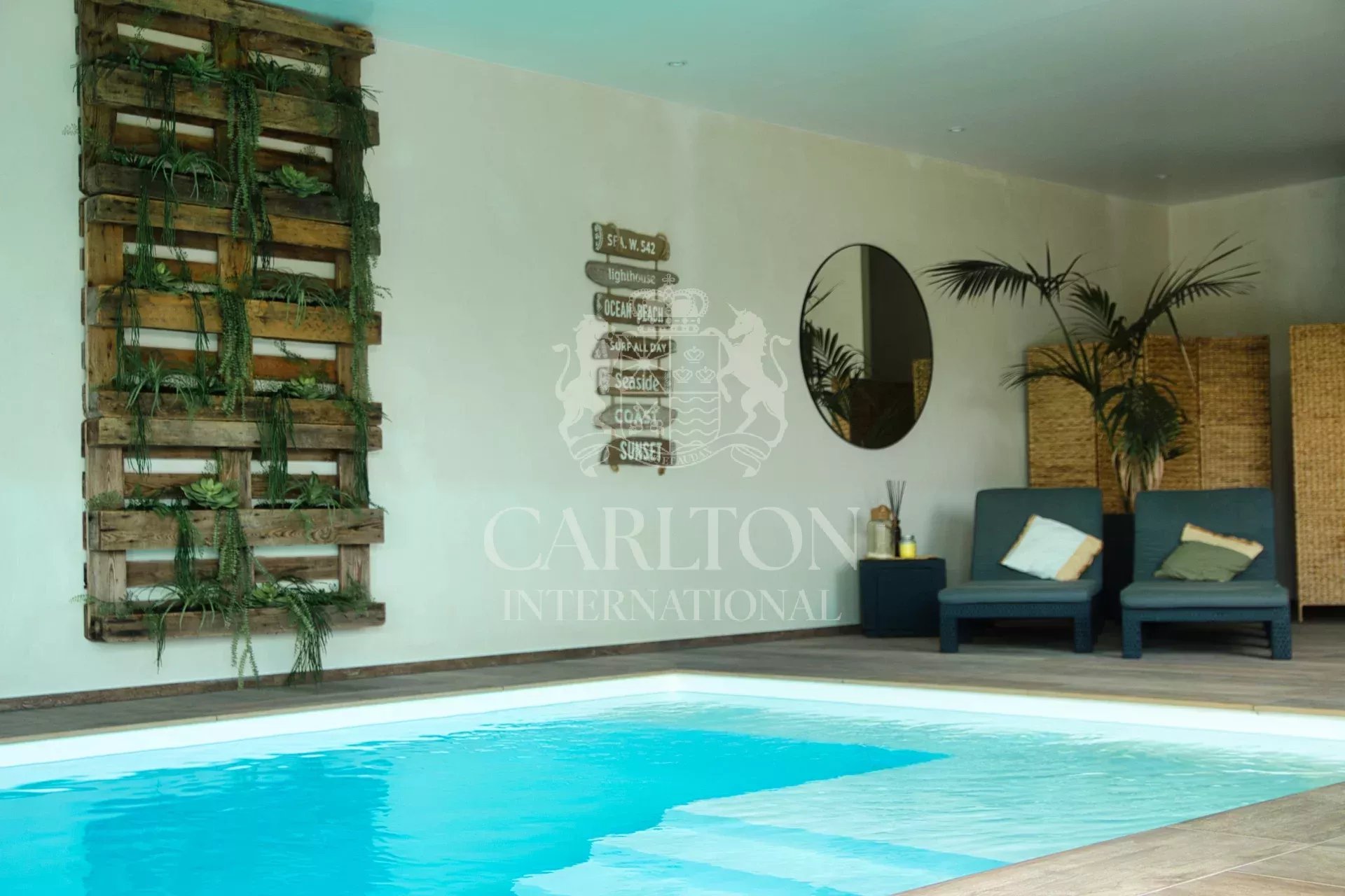 The highlight is the indoor pool combined with the exclusive garden and outdoor area. The large windows can be fully opened, allowing you to enjoy the terrace while easily taking a refreshing dip in the pool.