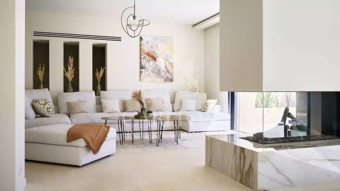 The contemporary decor blends style and comfort, with spacious living areas and large windows that let in plenty of natural light. The villa’s well-appointed bedrooms provide a peaceful retreat, while the outdoor space includes a beautiful garden and a nice heated pool.