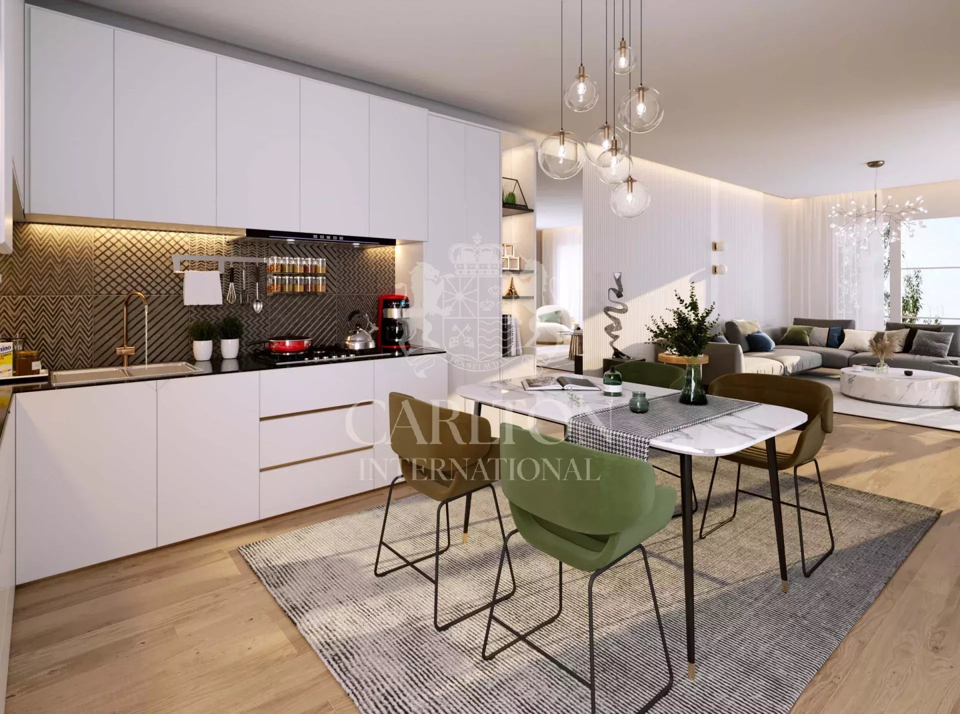 This 89 m² living area home includes an open-plan kitchen connected to the living room and terraces, 3 bedrooms, 2 spacious shower rooms, and a walk-in closet. On the ground floor, there is a laundry room with a utility area and separate toilets. All rooms are air-conditioned. Outside, you’ll find a 15 m² terrace, a balcony, a Jacuzzi, a 110 m² garden, and a private parking space. An additional parking spot can be purchased.