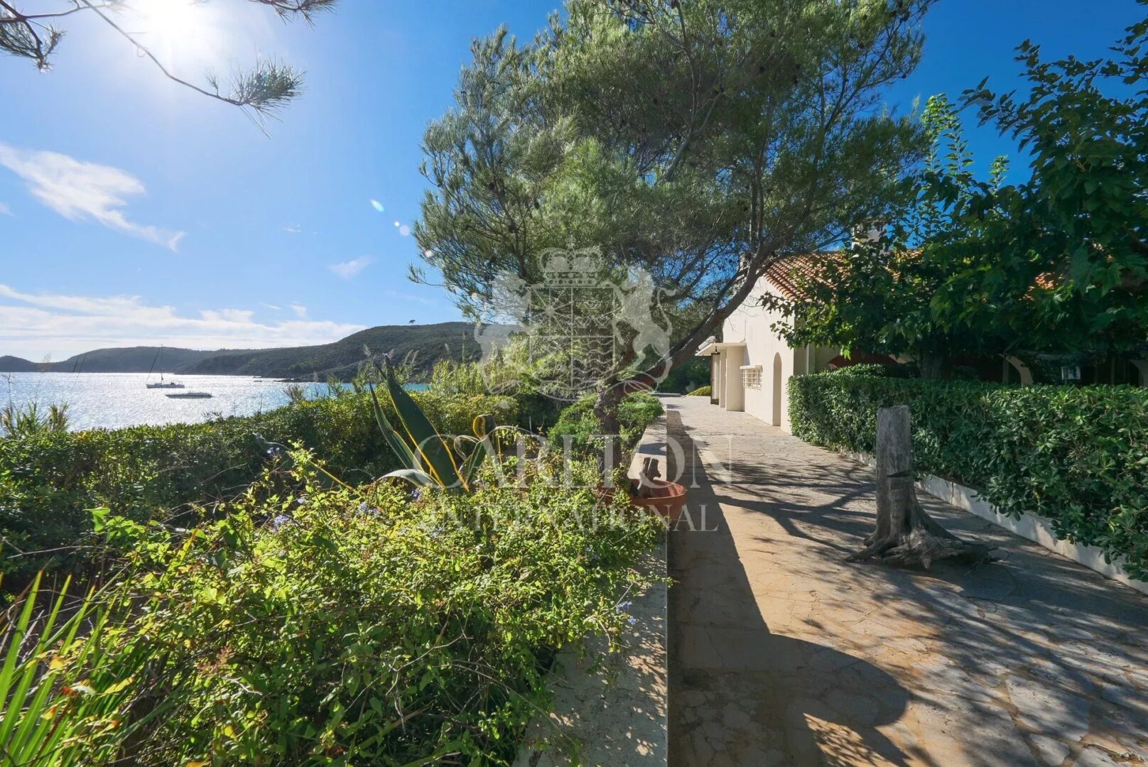 A private path, lined with vegetation and offering stunning sea views, leads to a second beach, accessible from the main house.