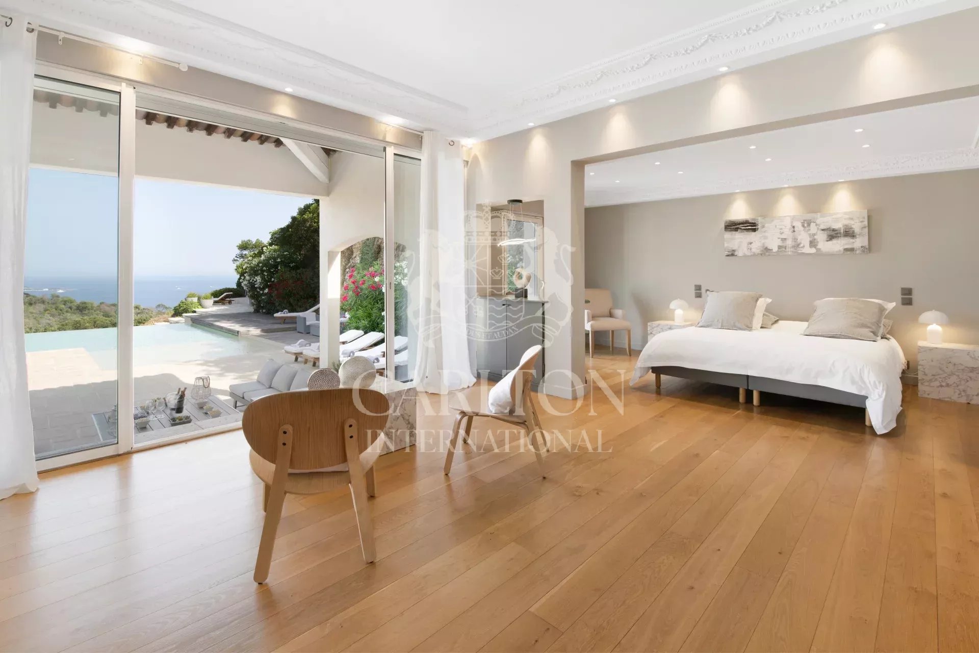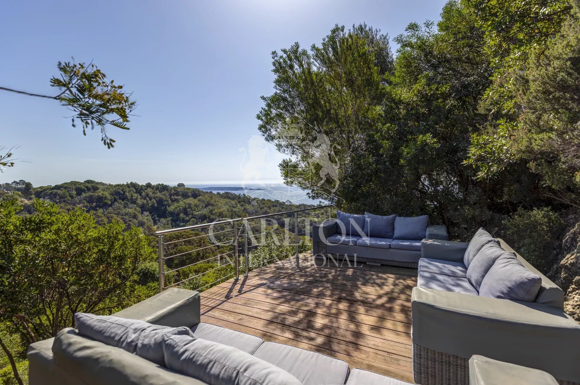 This villa in the hills above Cannes offers an authentic atmosphere typical of the South of France. Perfect for a family home, it boasts uninterrupted sea views, ensuring total privacy.