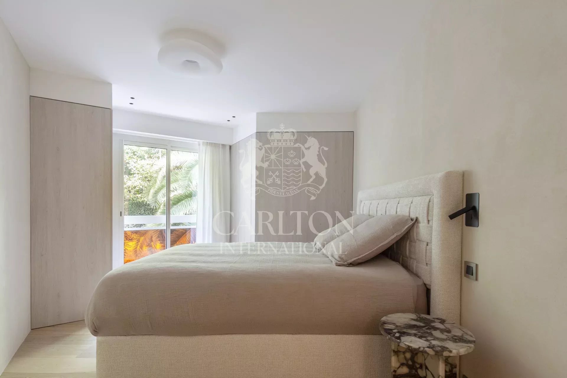 Discover a three-bedroom 1216sqft apartment, entirely renovated with exceptional materials and sold furnished, in an intimate, secure residence, enhanced by a garden with trees and a swimming pool. A true haven of peace, untouched by the hustle and bustle, yet within easy reach of shops and beaches.