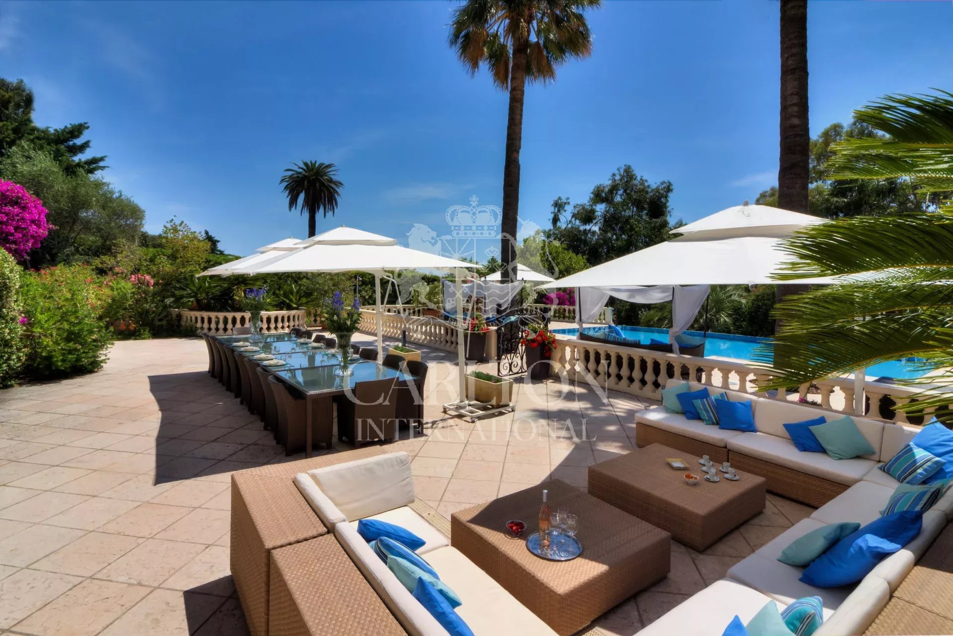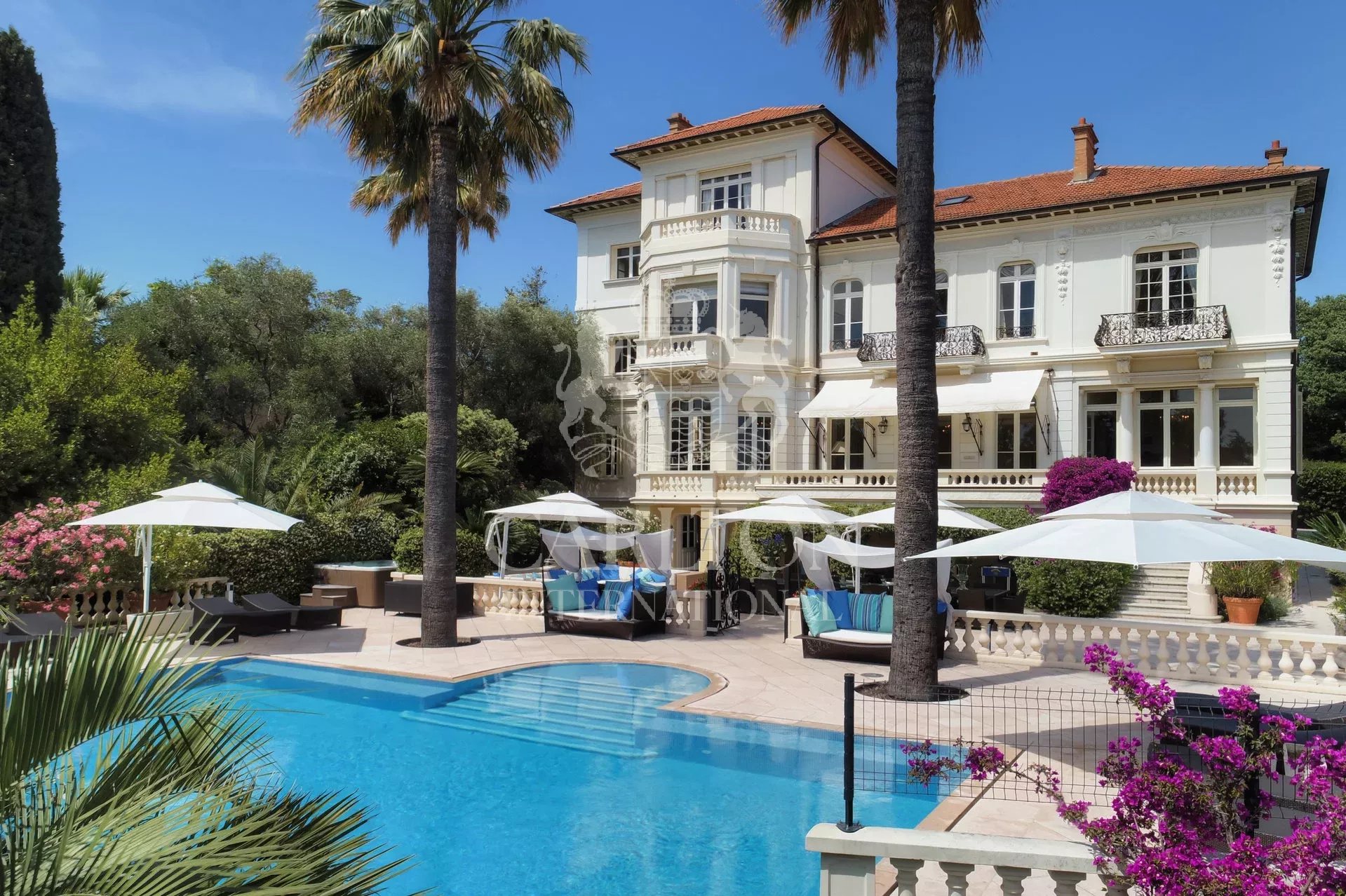 Superb private mansion located in the residential center of Cannes, just 800 meters from the Palais des Festivals and 30 minutes from Nice International Airport. Built in 1910 by a renowned Italian architect, this historic “Belle Epoque” property has been completely renovated, preserving its original splendor while adding all modern comforts. This air-conditioned villa has 11 bedrooms and sleeps a total of 26. A sublime, fully landscaped garden leads to the heated swimming pool and Jacuzzi, as well as several terraces with summer living and dining areas. Ideal for your vacations, this property is also perfectly suited to the organization of all your events, accommodating up to 350 people outdoors and 120 indoors. Ref 452