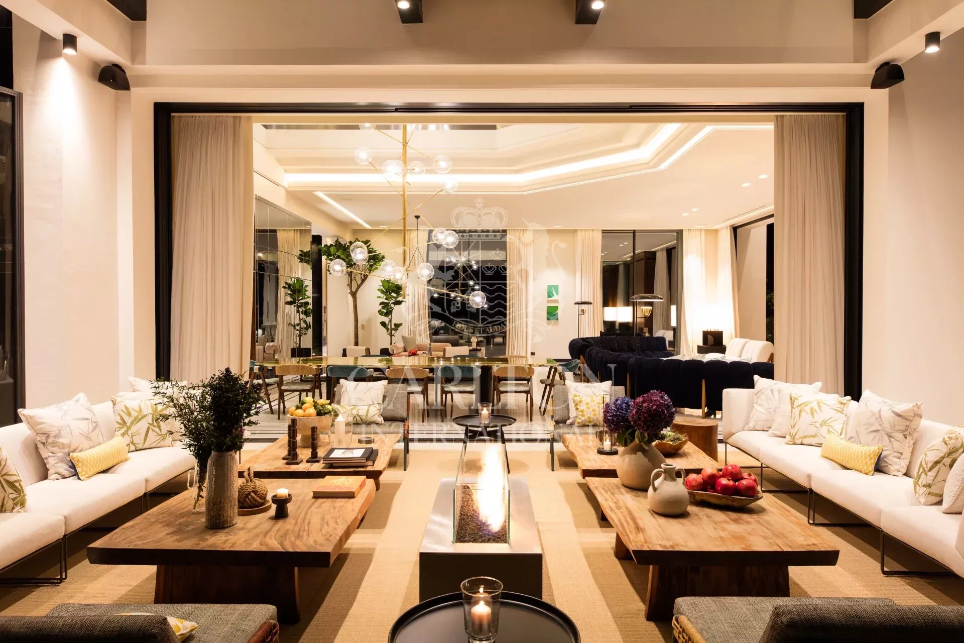 This beautiful, ultra-contemporary villa has been luxuriously and tastefully decorated, and offers top-quality amenities: a wellness area, a gym, and a cinema with an aquarium.