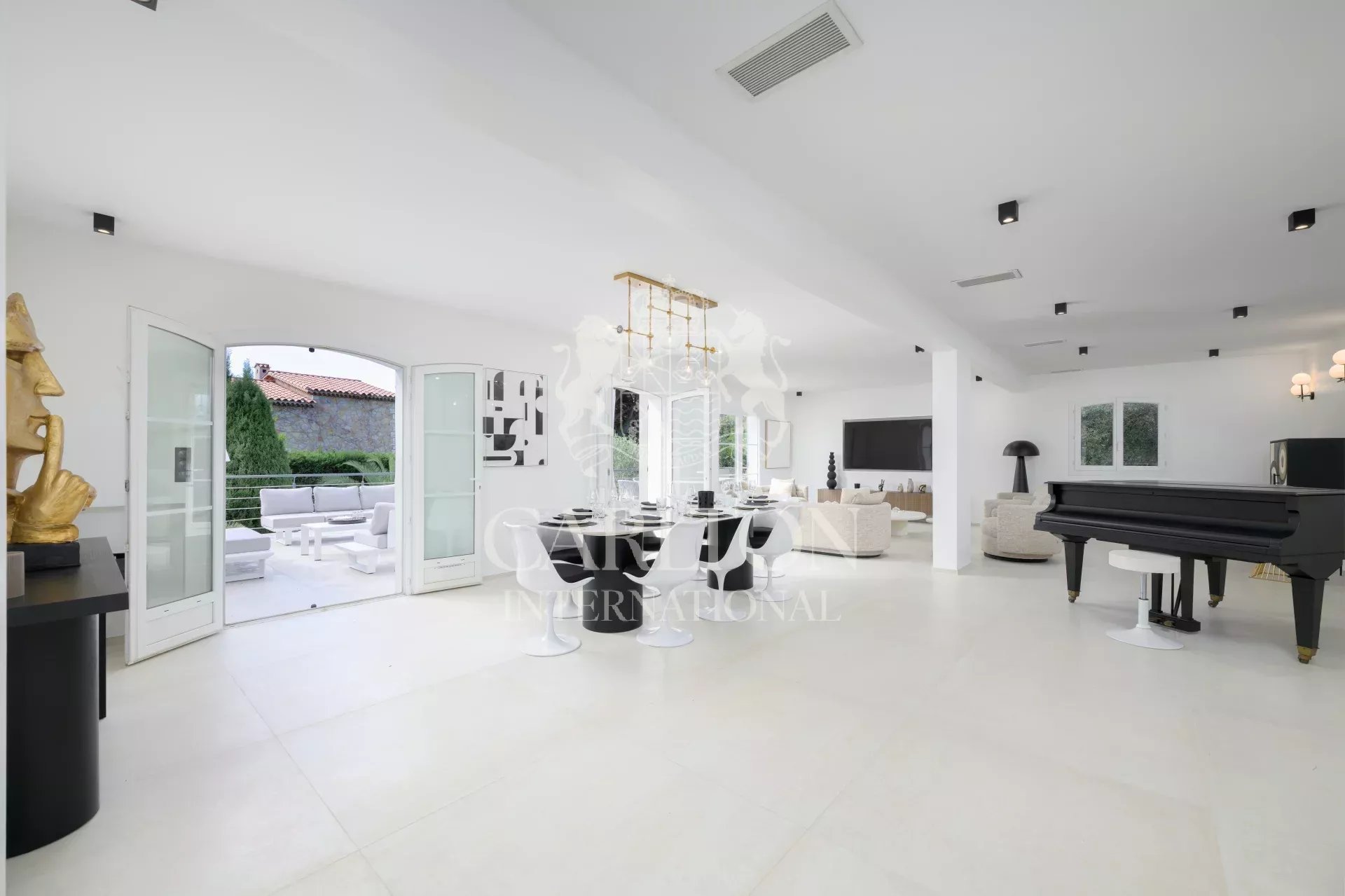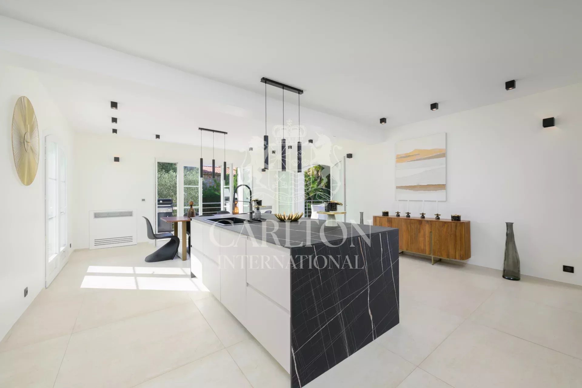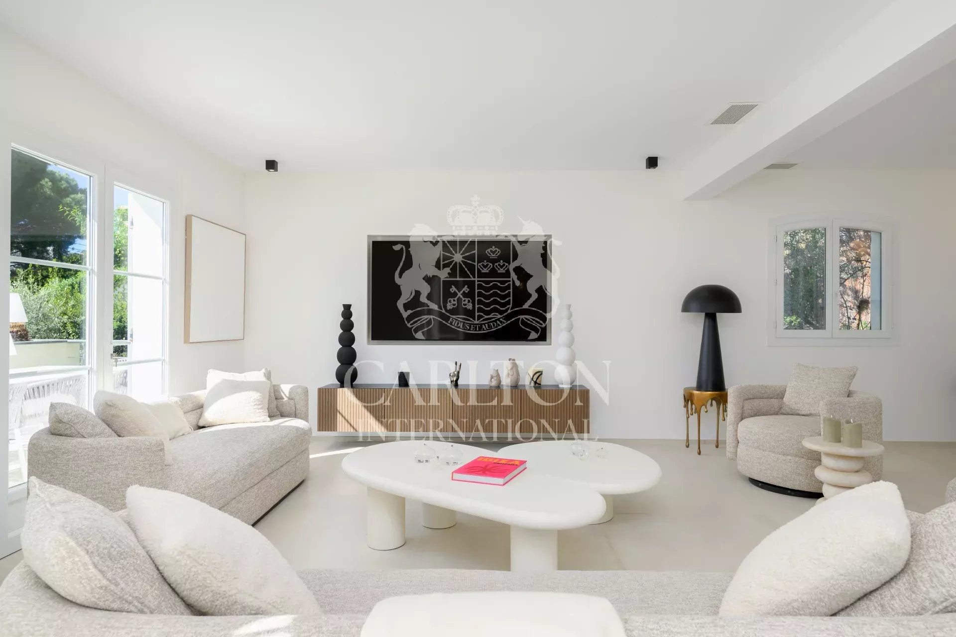 Nestled in a residential area, less than 3 km from the famous Palais des Festivals and the vibrant centre of Cannes, this sumptuous, fully renovated villa welcomes you to an elegant, soothing setting. Decorated with particular care and quality materials, it offers a contemporary and warm atmosphere, designed for absolute comfort.