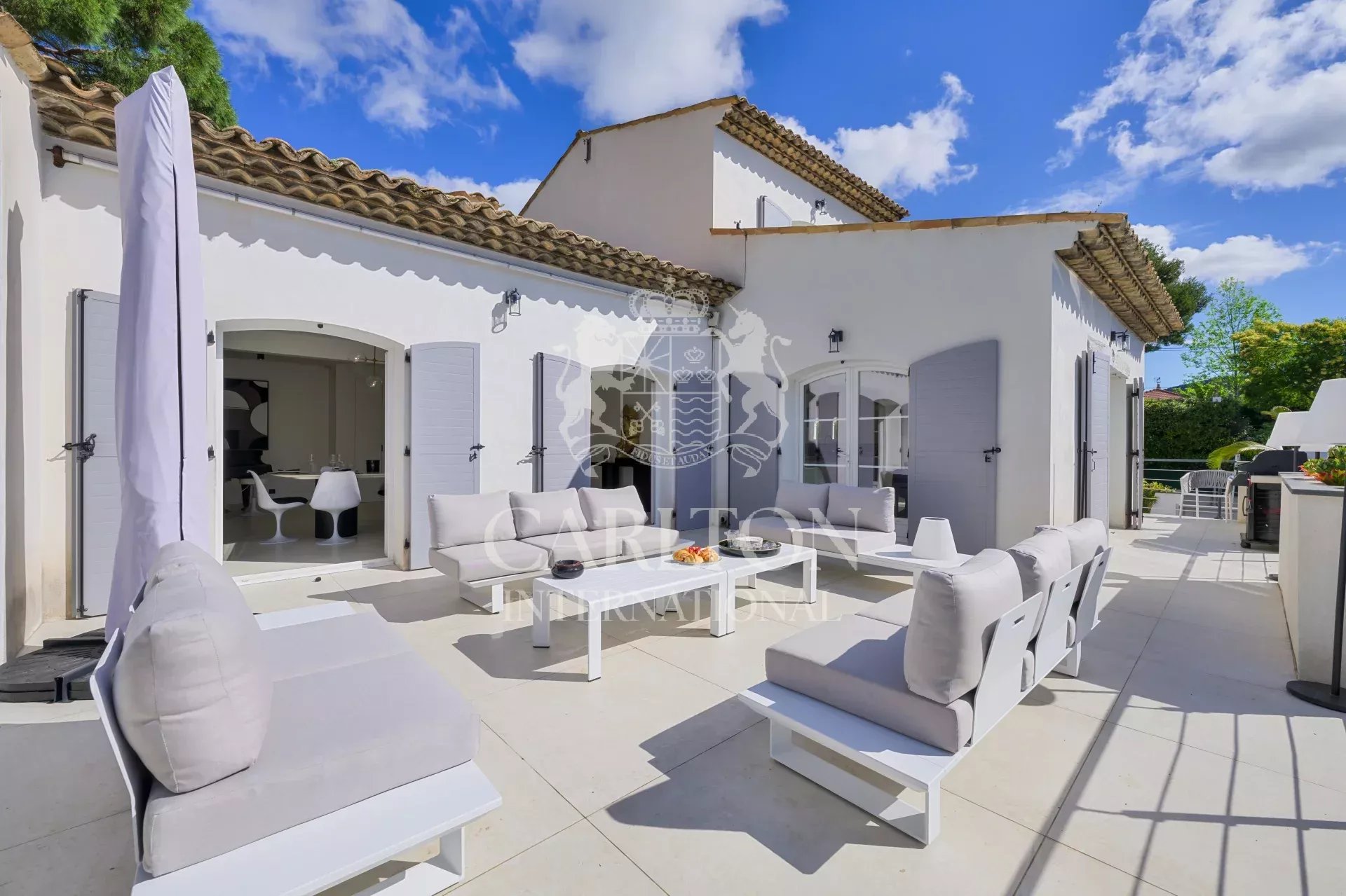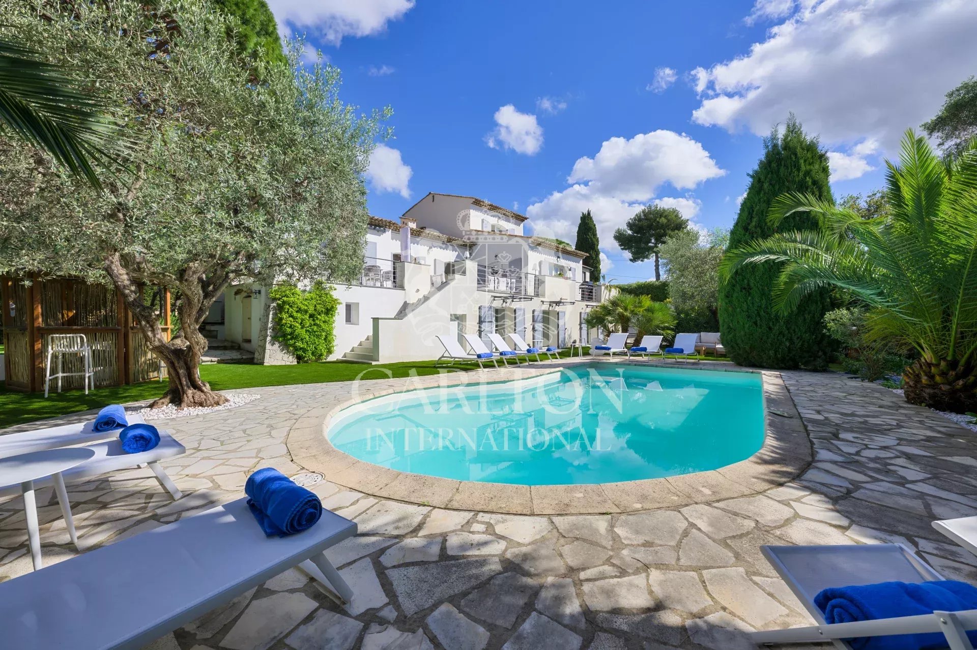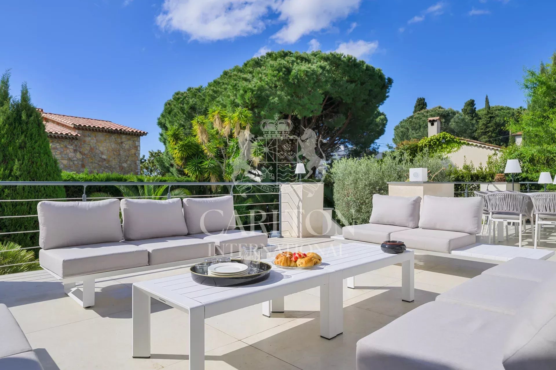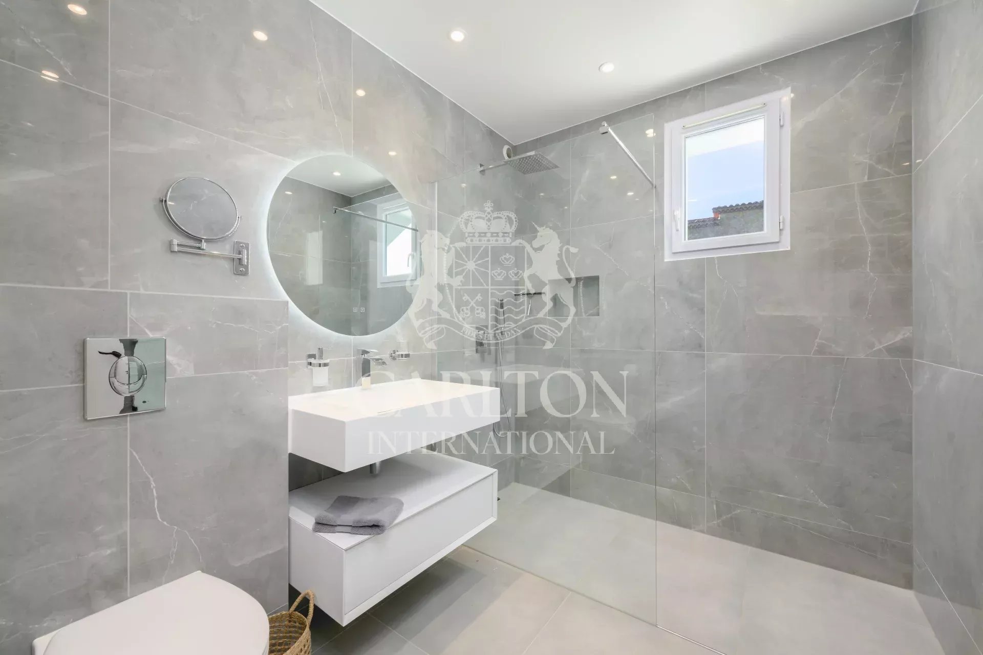 Nestled in a residential area, less than 3 km from the famous Palais des Festivals and the vibrant centre of Cannes, this sumptuous, fully renovated villa welcomes you to an elegant, soothing setting. Decorated with particular care and quality materials, it offers a contemporary and warm atmosphere, designed for absolute comfort.