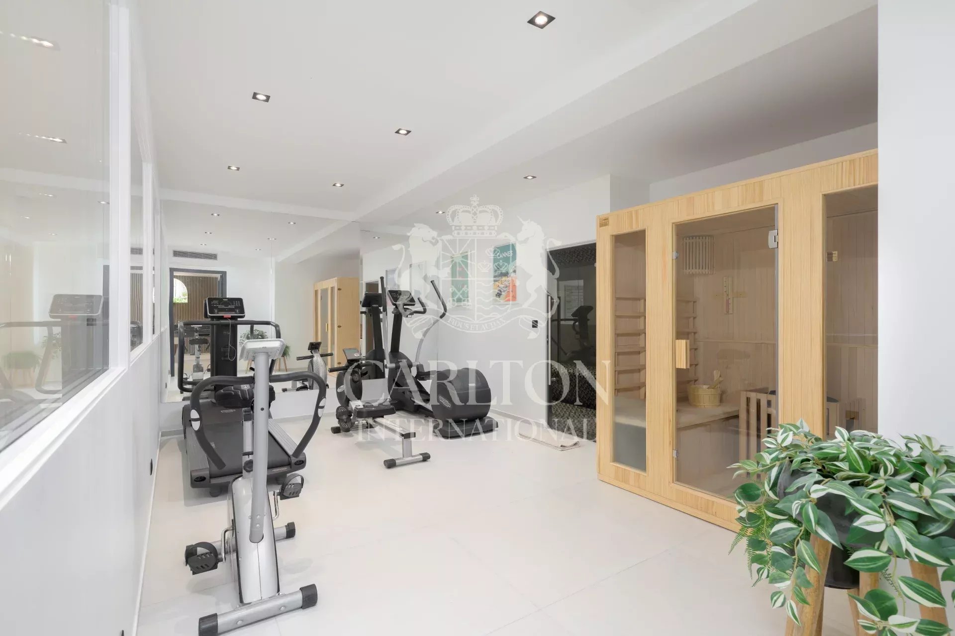 Upstairs, the master suite enjoys sea views, adding an exclusive touch to your stay. Leisure facilities include a wellness area with gym and table football, and outside, a lovely secluded garden with heated pool, perfect for relaxing in the Côte d’Azur sunshine.