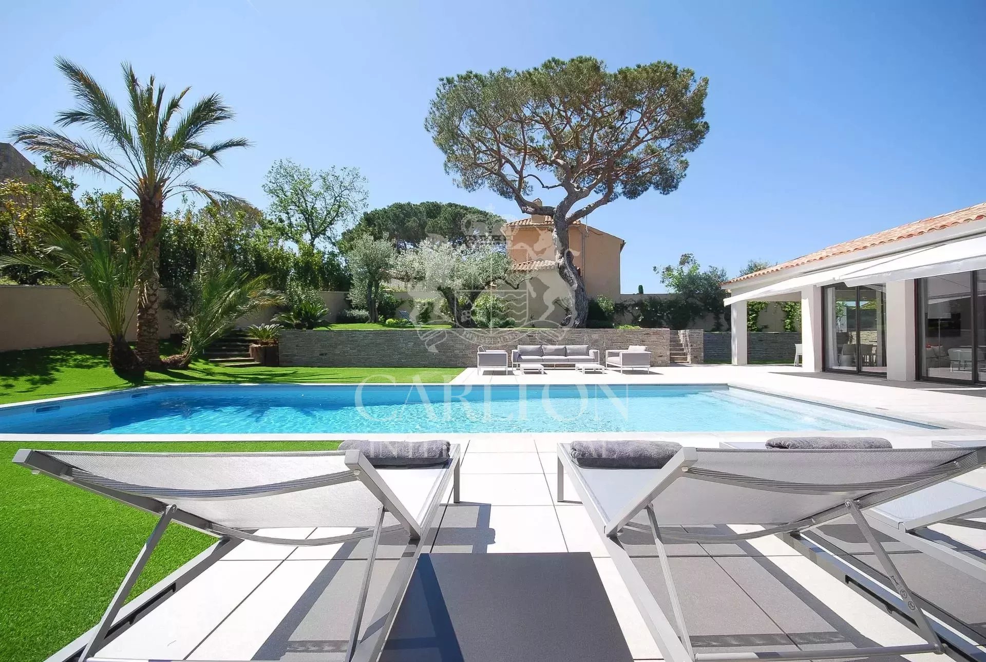 St Tropez : At only 350 meters from the famous Place Des Lices, this magnificent contemporary style villa offers elegance and refinement in design. You will certainly be seduced by its spacious, sun-filled rooms, high-end finishes and the overall ‘feel’ of luxurious and confortable living.
