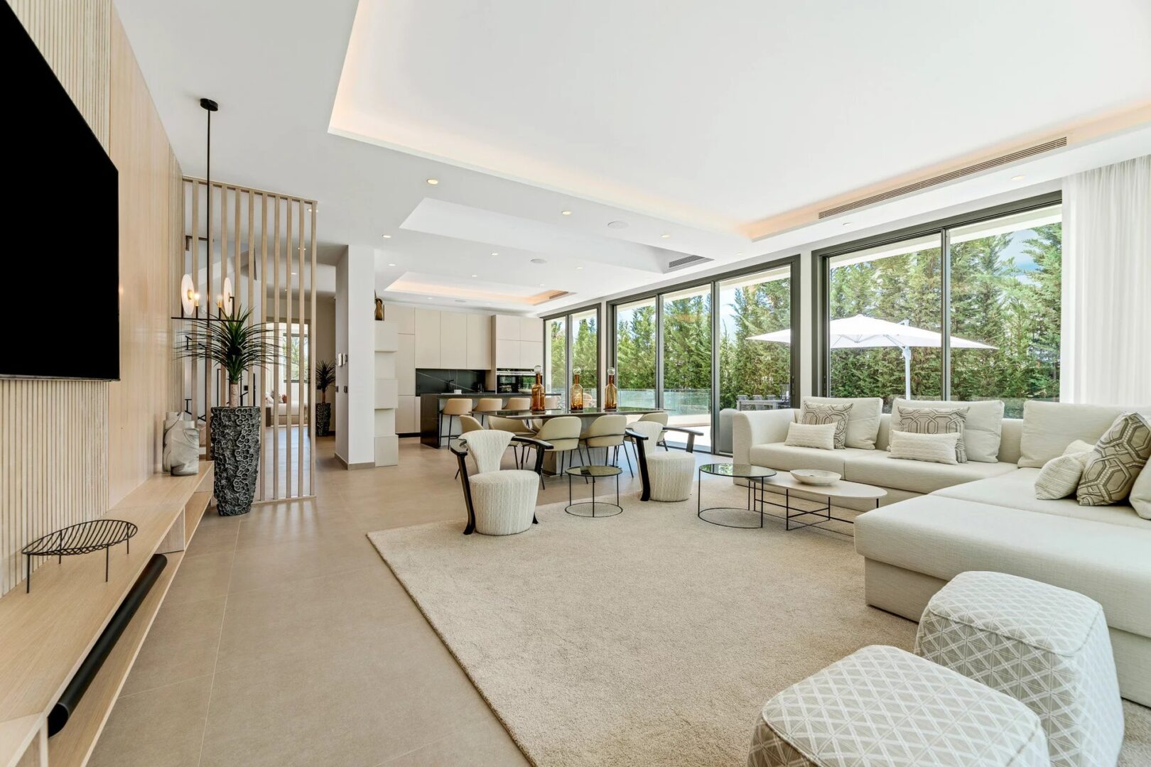 Situated in the exclusive neighbourhood of La Cerquilla in Nueva Andalucia, Marbella, this stunning villa exemplifies modern luxury and sophistication. Completed in 2023, the property offers a seamless blend of contemporary design and high-end finishes, making it an ideal choice for those seeking a refined lifestyle. With its panoramic mountain and golf views, this four-bedroom villa is perfectly positioned to enjoy the best of Marbella’s prestigious surroundings.