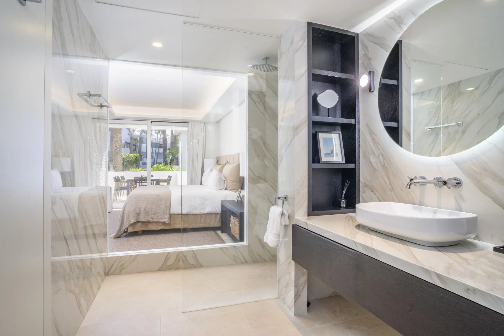 This luxury three-bedroom apartment is located in the prestigious Jardín Japonés enclave along Marbella’s renowned Golden Mile. Offering an ideal blend of sophisticated design, expansive interiors, and a prime coastal location, this rare property is perfect for discerning buyers seeking high-end real estate on the Costa del Sol—just minutes from the beach, fine dining, and world-class amenities.