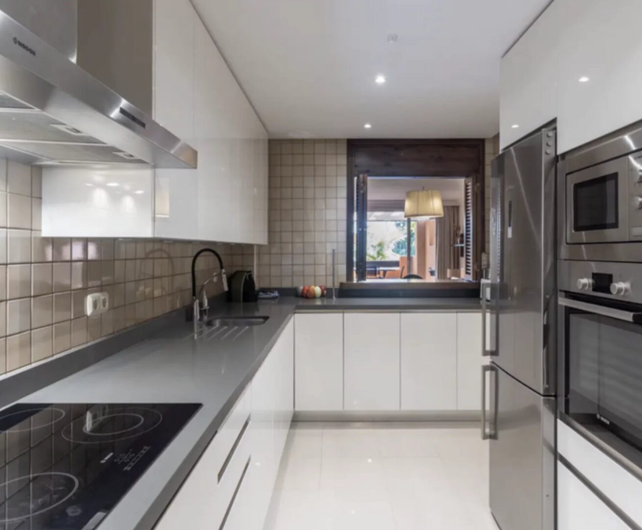 The apartment features a bright, south-facing layout, a modern interior design, and a fully fitted contemporary kitchen. A covered terrace with an outdoor dining area invites you to enjoy Marbella’s warm climate all year round.