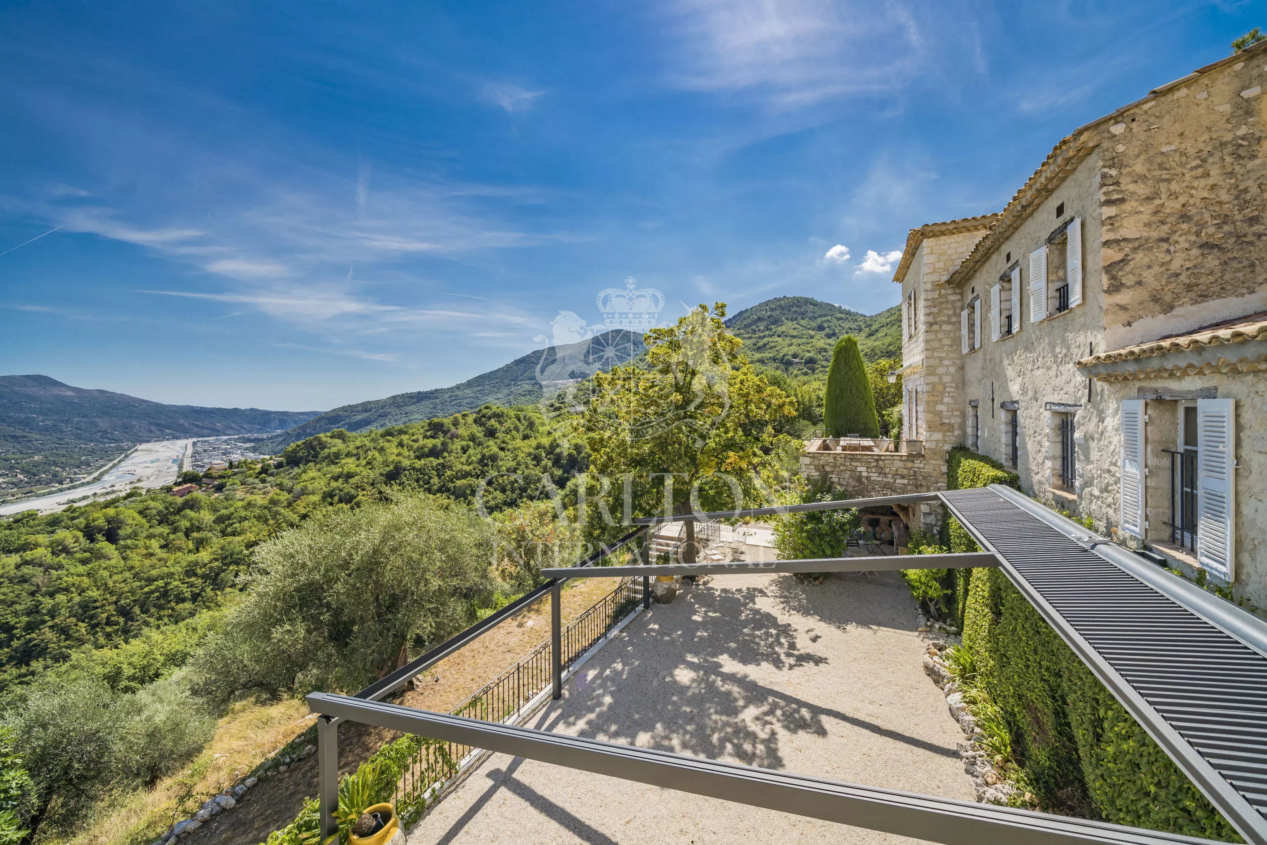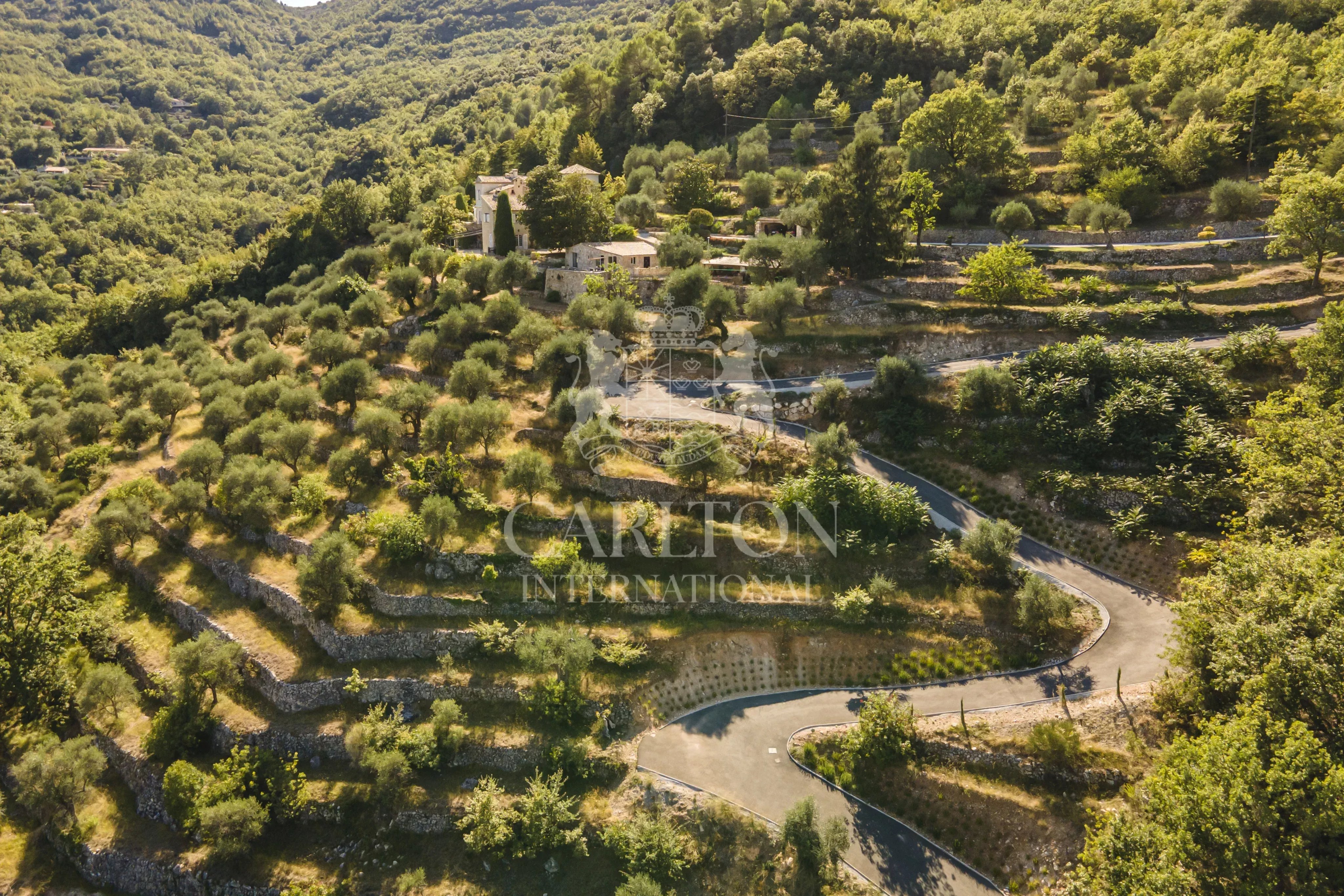 Built in the heart of a private estate of approximately 69 hectares, combining preserved forests, olive groves, and terraced land, it offers a setting of rare confidentiality, just 25 minutes from Nice international airport and 30 minutes from the Mediterranean coast.